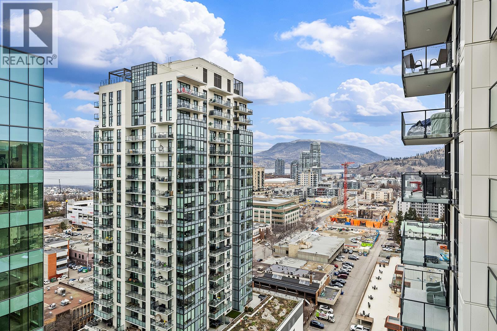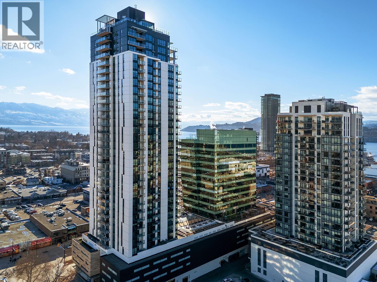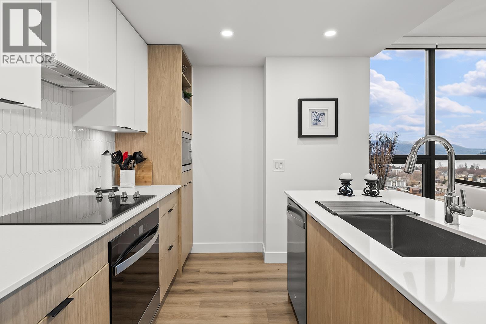 Lake Views and the very best sun exposure from this corner unit. The two bedrooms have upgraded flooring, the primary has a great walk-in closet and both offer beautiful Lake Views. The kitchen features modern flat panel cabinetry with beautiful warm and white colour scheme and upgraded microwave with trim kit. This home has two spacious bathrooms and convenient in suite laundry. Unwind in the evening on your balcony and enjoy sunsets and city lights. Neighbours will be envious of your TWO side by side, secured underground parking stalls and storage unit. This luxury building provides First Class Amenities including infinity sky pool & hot tub, rooftop kitchen with lounge, fitness room, dog run & wash station, rooftop and street level co-work space plus a party room. Get in touch today for your private viewing and treat Yourself to Resort Living and the Ultimate Okanagan lifestyle!! (id:6770)