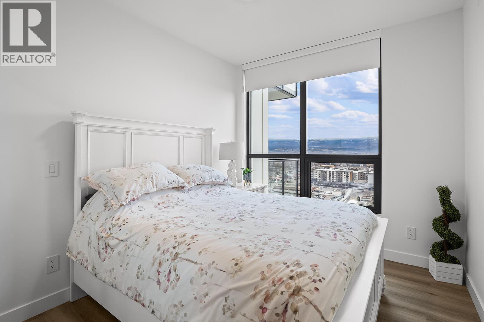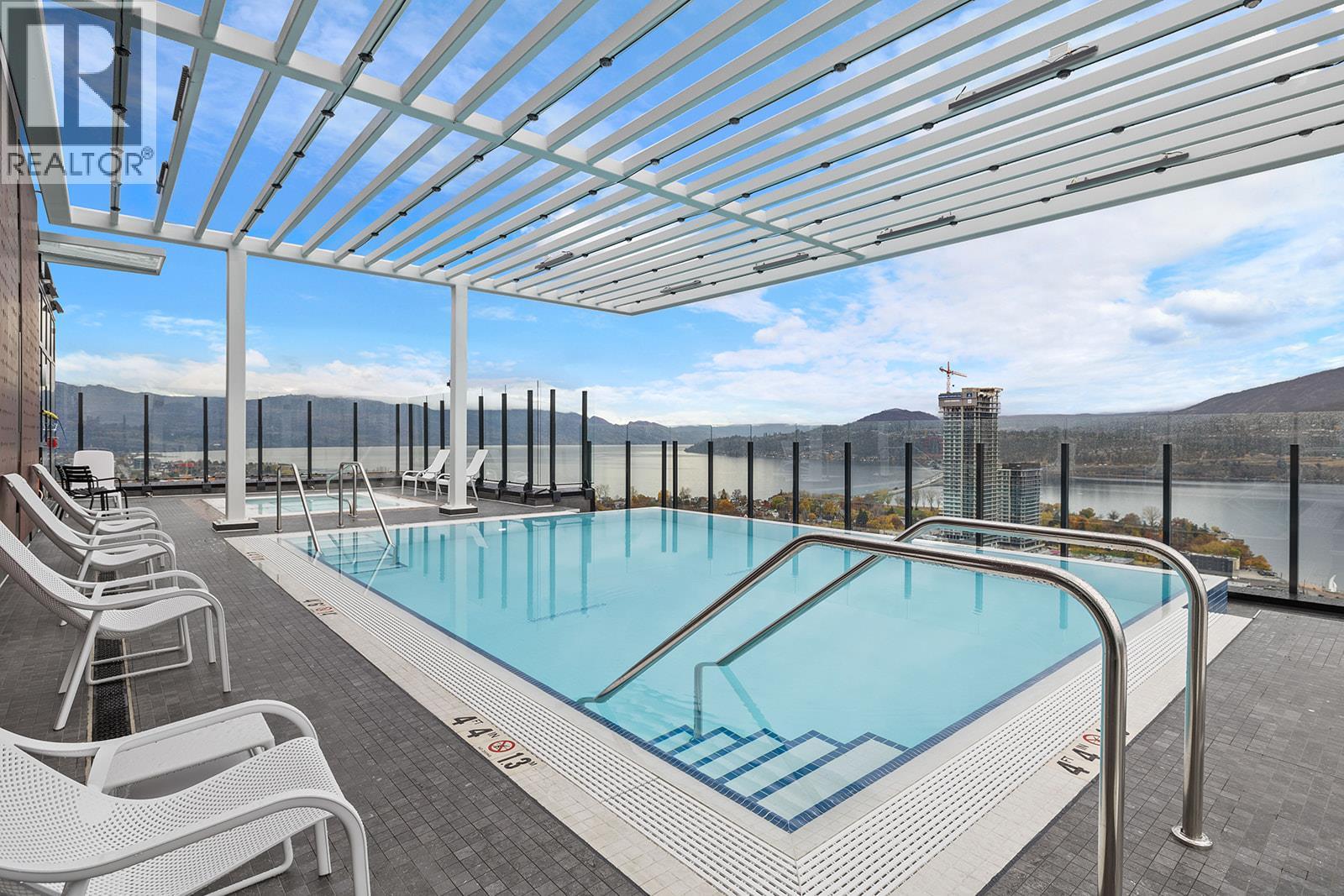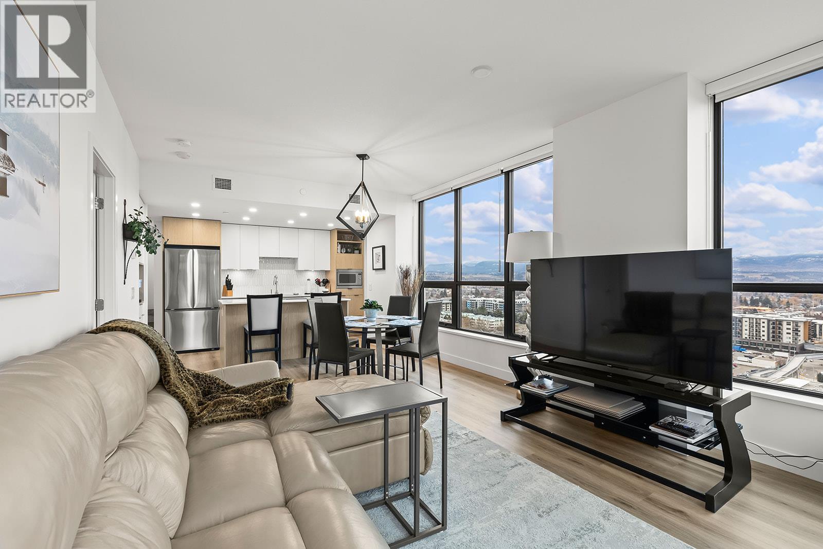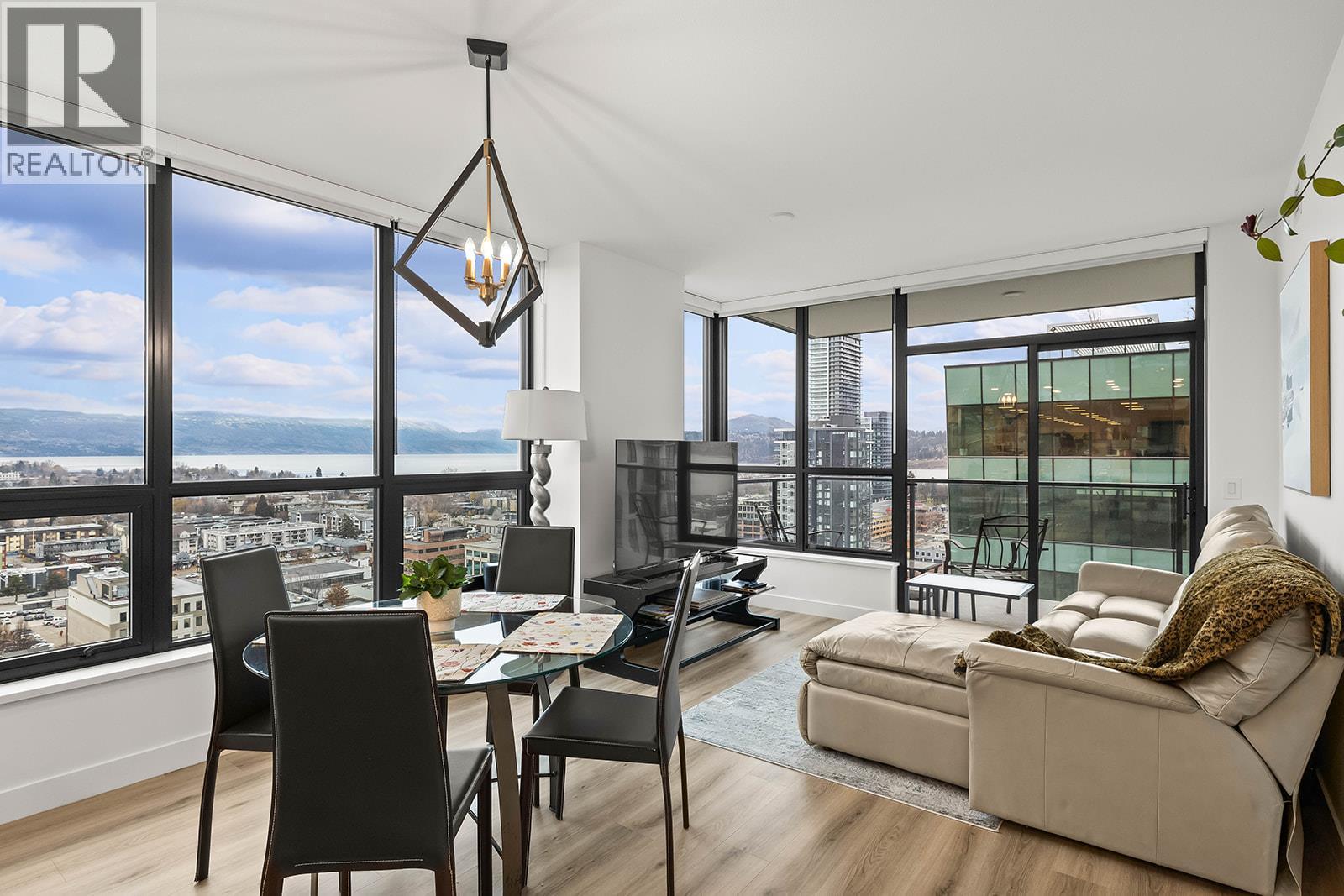 Lake Views and the very best sun exposure from this corner unit. The two bedrooms have upgraded flooring, the primary has a great walk-in closet and both offer beautiful Lake Views. The kitchen features modern flat panel cabinetry with beautiful warm and white colour scheme and upgraded microwave with trim kit. This home has two spacious bathrooms and convenient in suite laundry. Unwind in the evening on your balcony and enjoy sunsets and city lights. Neighbours will be envious of your TWO side by side, secured underground parking stalls and storage unit. This luxury building provides First Class Amenities including infinity sky pool & hot tub, rooftop kitchen with lounge, fitness room, dog run & wash station, rooftop and street level co-work space plus a party room. Get in touch today for your private viewing and treat Yourself to Resort Living and the Ultimate Okanagan lifestyle!! (id:6770)