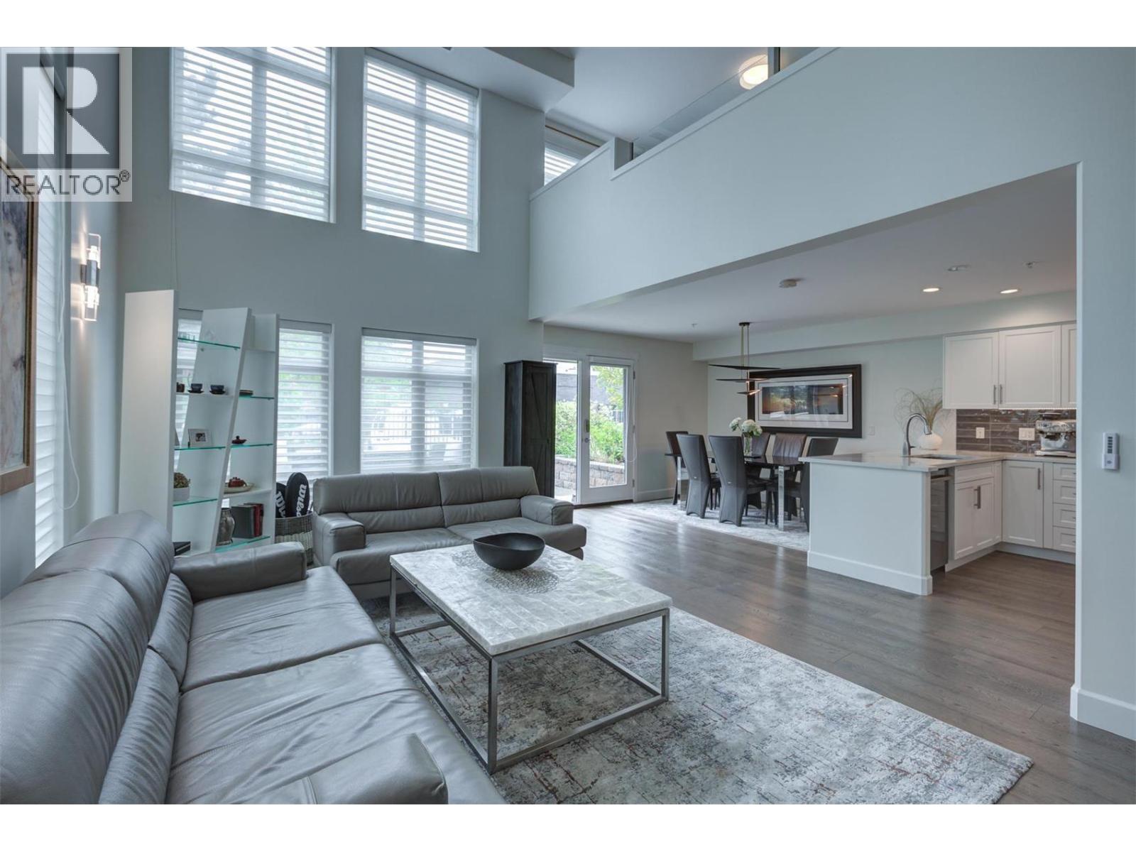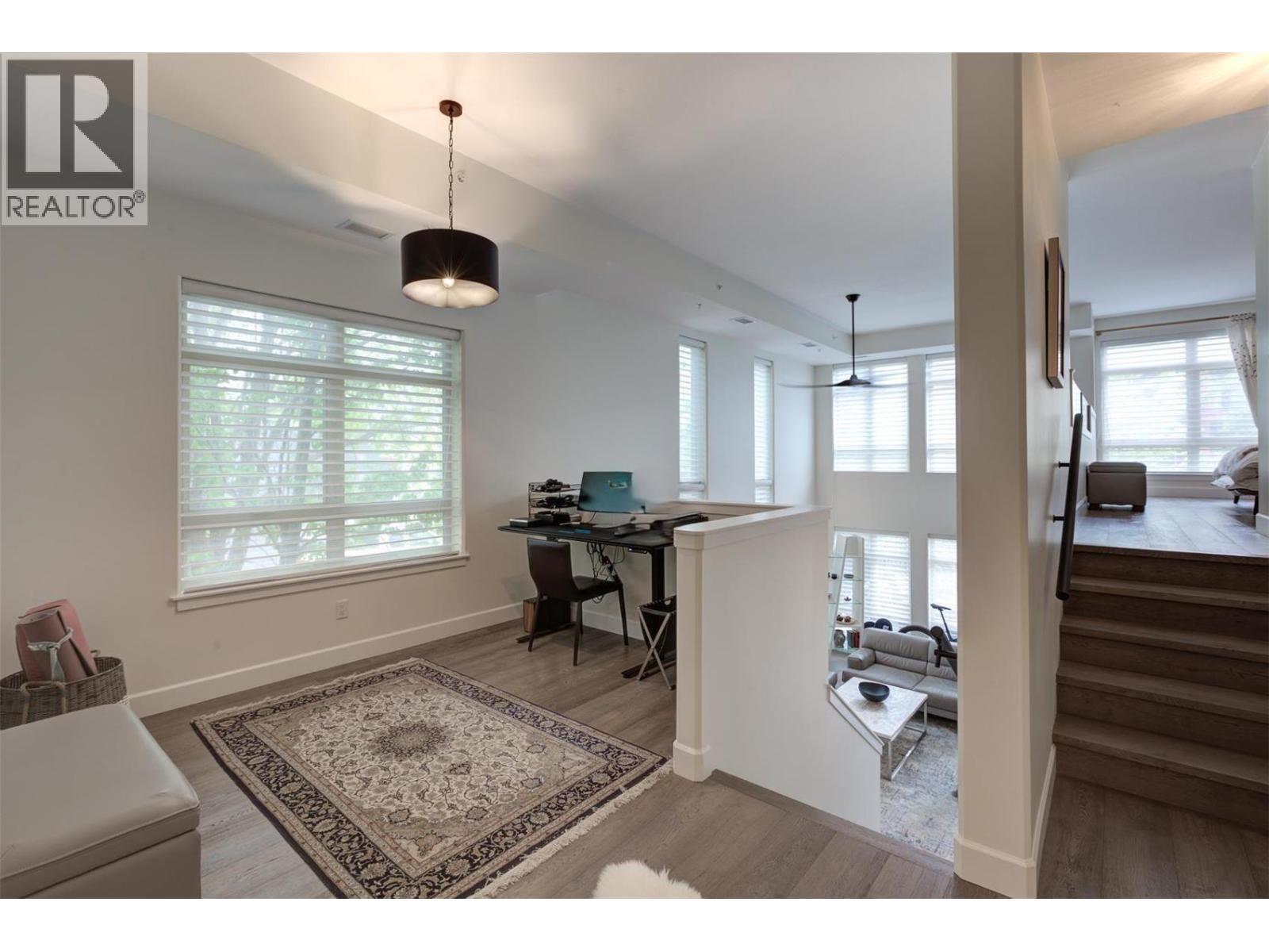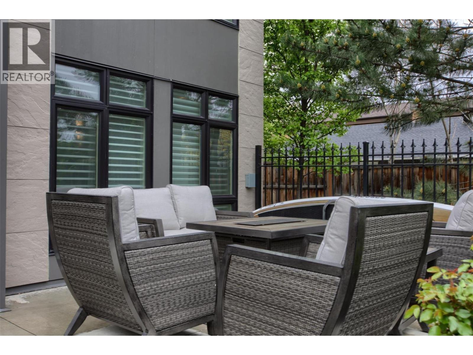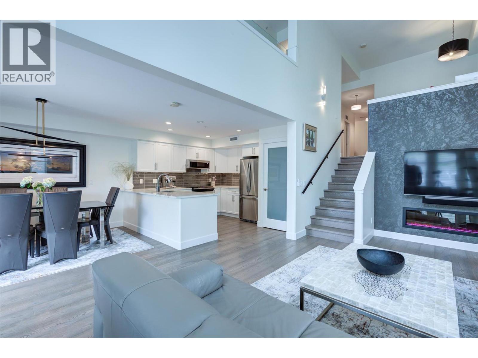 SOPHISTICATION AND LUXURY, 2 bedroom + den Brownstone style TRUE CORNER with PRIVATE ACCESS through YOUR OWN BEAUTIFUL FULLY FENCED PATIO AND COURTYARD. Located in the highly desirable, prestigious, popular and trendy Pandosy District known for its unique shopping, coffee houses, pubs, restaurants, groceries, + only a 1/2 block to Okanagan Lake, walking distance to Kelowna General Hospital and everything else. Gorgeous floor to ceiling windows, boasting natural light, 18-foot ceilings, engineered rich Oak hardwood floors as well as an open concept design. The main living area includes a natural mineral limestone feature wall including built-in electric fireplace + a newer kitchen complete with marbled quartz countertops and SS appliances. Open style spacious lofted primary bedroom, with natural mineral limestone painted feature wall, double sided closets + a modern renovated 5-piece bathroom with Bespoke Italian Marble. There is also a large second bedroom, den, full size laundry room, + 3-piece bath with Bespoke Italian tile on the second level. EV CHARGER ALREADY INSTALLED in the secured parking garage with a 2nd access to the unit from inside if so desired. Strata fees include private storage locker on the same floor, Geothermal heating/cooling, water, sewer, garbage collection & recycling, building insurance, management, snow removal, building repair & maintenance. A fabulous townhome that offers the turn-key lifestyle you desire in a neighborhood that is continually increasing in value. Pets and rentals welcome! Pride of ownership is evident, and this home must be seen to be appreciated. PET FRIENDLY! (id:6770)