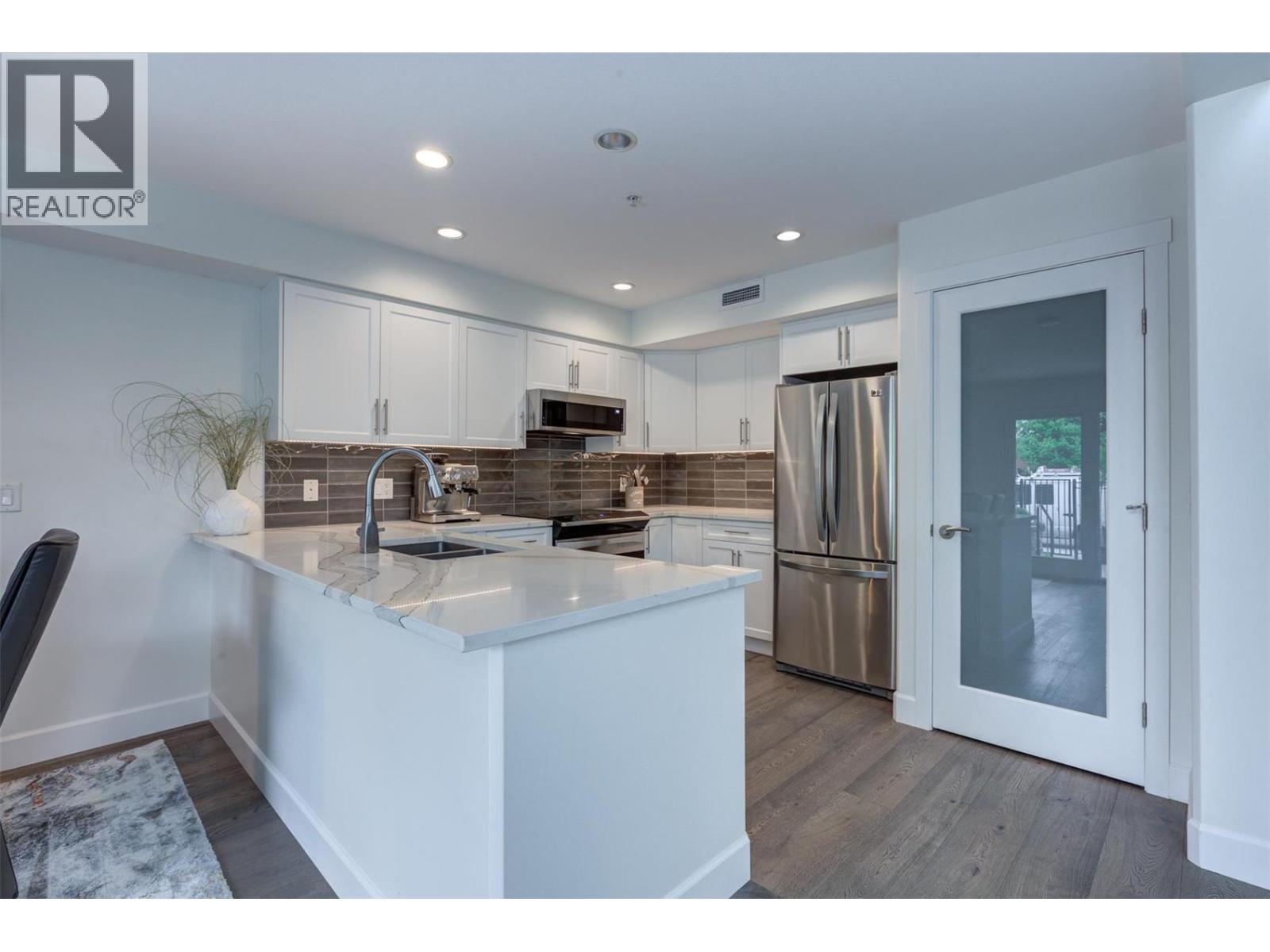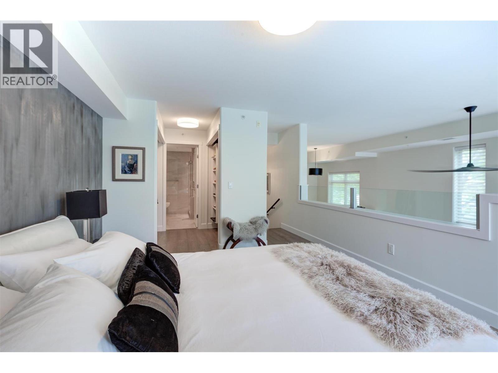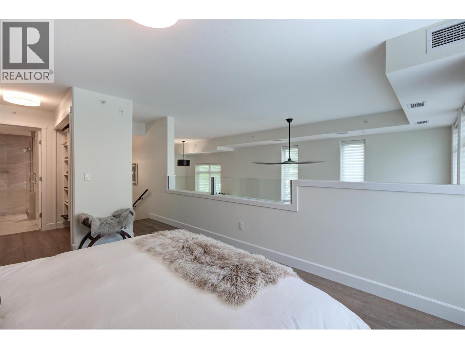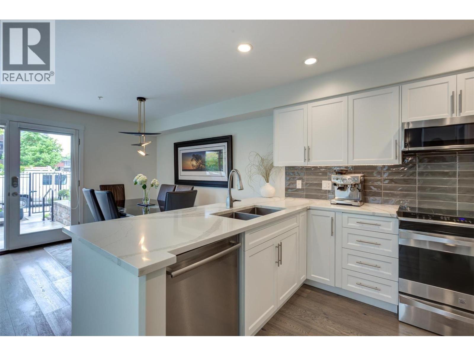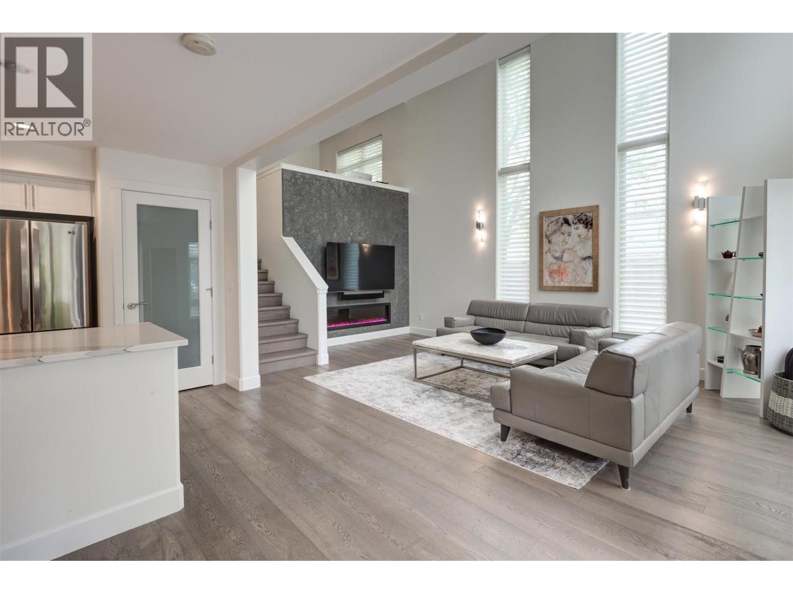 SOPHISTICATION AND LUXURY, 2 bedroom + den Brownstone style TRUE CORNER with PRIVATE ACCESS through YOUR OWN BEAUTIFUL FULLY FENCED PATIO AND COURTYARD. Located in the highly desirable, prestigious, popular and trendy Pandosy District known for its unique shopping, coffee houses, pubs, restaurants, groceries, + only a 1/2 block to Okanagan Lake, walking distance to Kelowna General Hospital and everything else. Gorgeous floor to ceiling windows, boasting natural light, 18-foot ceilings, engineered rich Oak hardwood floors as well as an open concept design. The main living area includes a natural mineral limestone feature wall including built-in electric fireplace + a newer kitchen complete with marbled quartz countertops and SS appliances. Open style spacious lofted primary bedroom, with natural mineral limestone painted feature wall, double sided closets + a modern renovated 5-piece bathroom with Bespoke Italian Marble. There is also a large second bedroom, den, full size laundry room, + 3-piece bath with Bespoke Italian tile on the second level. EV CHARGER ALREADY INSTALLED in the secured parking garage with a 2nd access to the unit from inside if so desired. Strata fees include private storage locker on the same floor, Geothermal heating/cooling, water, sewer, garbage collection & recycling, building insurance, management, snow removal, building repair & maintenance. A fabulous townhome that offers the turn-key lifestyle you desire in a neighborhood that is continually increasing in value. Pets and rentals welcome! Pride of ownership is evident, and this home must be seen to be appreciated. PET FRIENDLY! (id:6770)