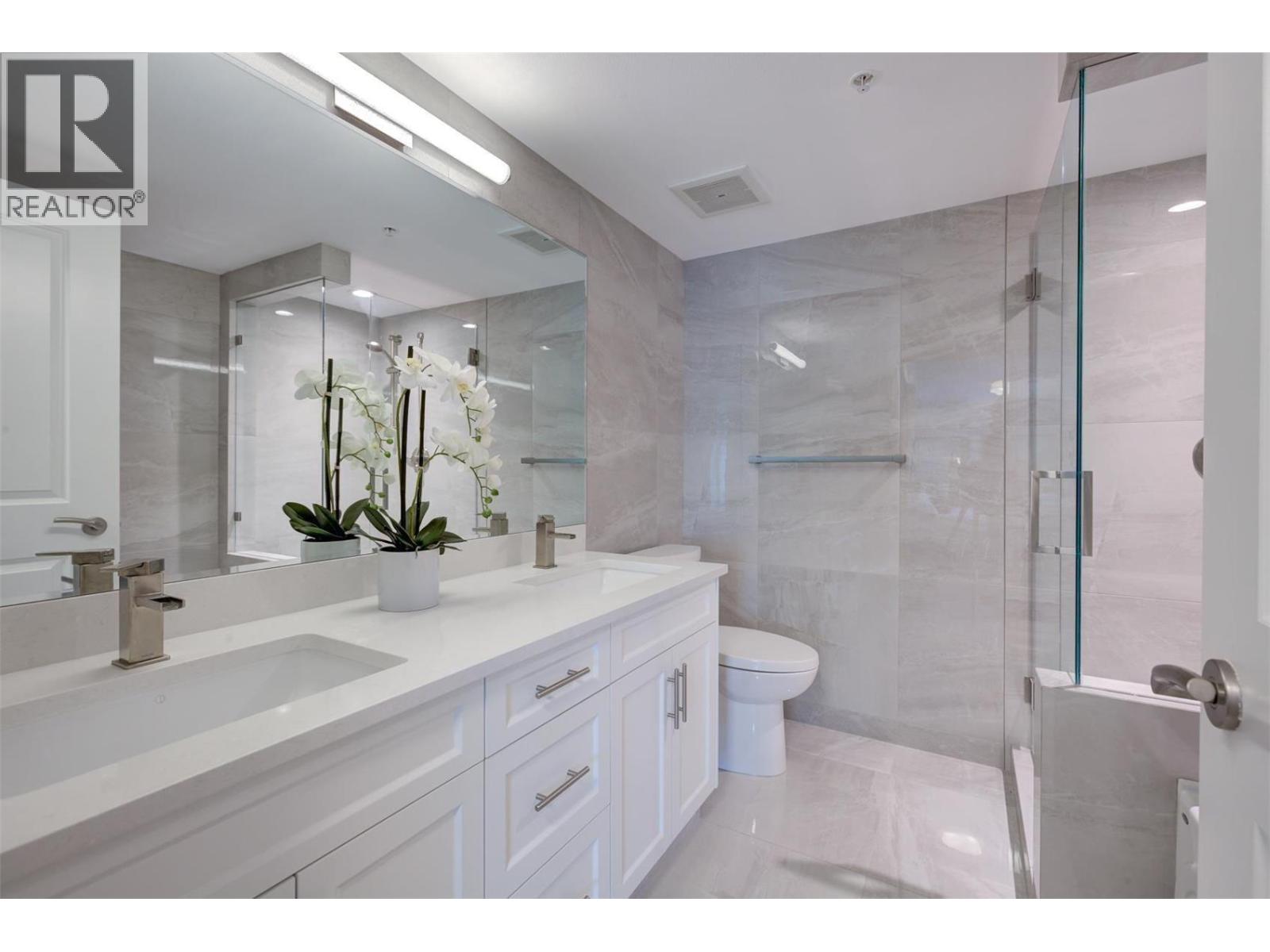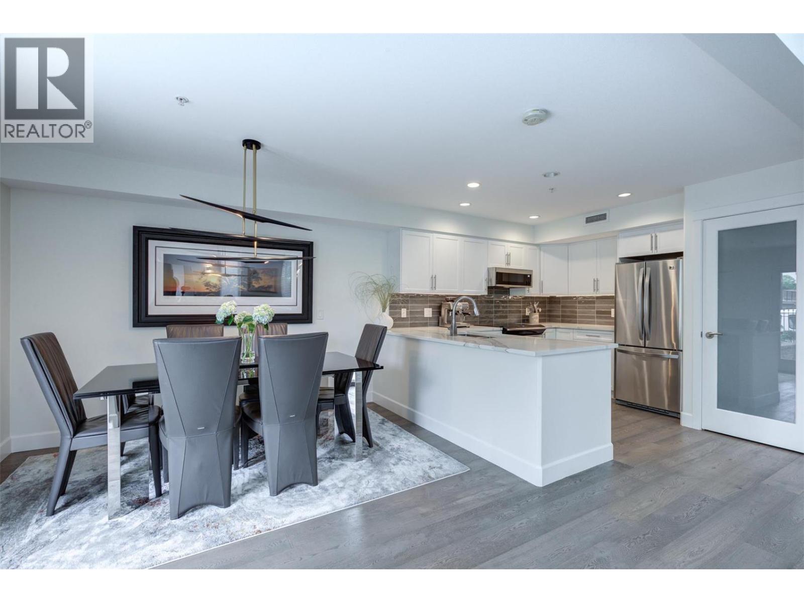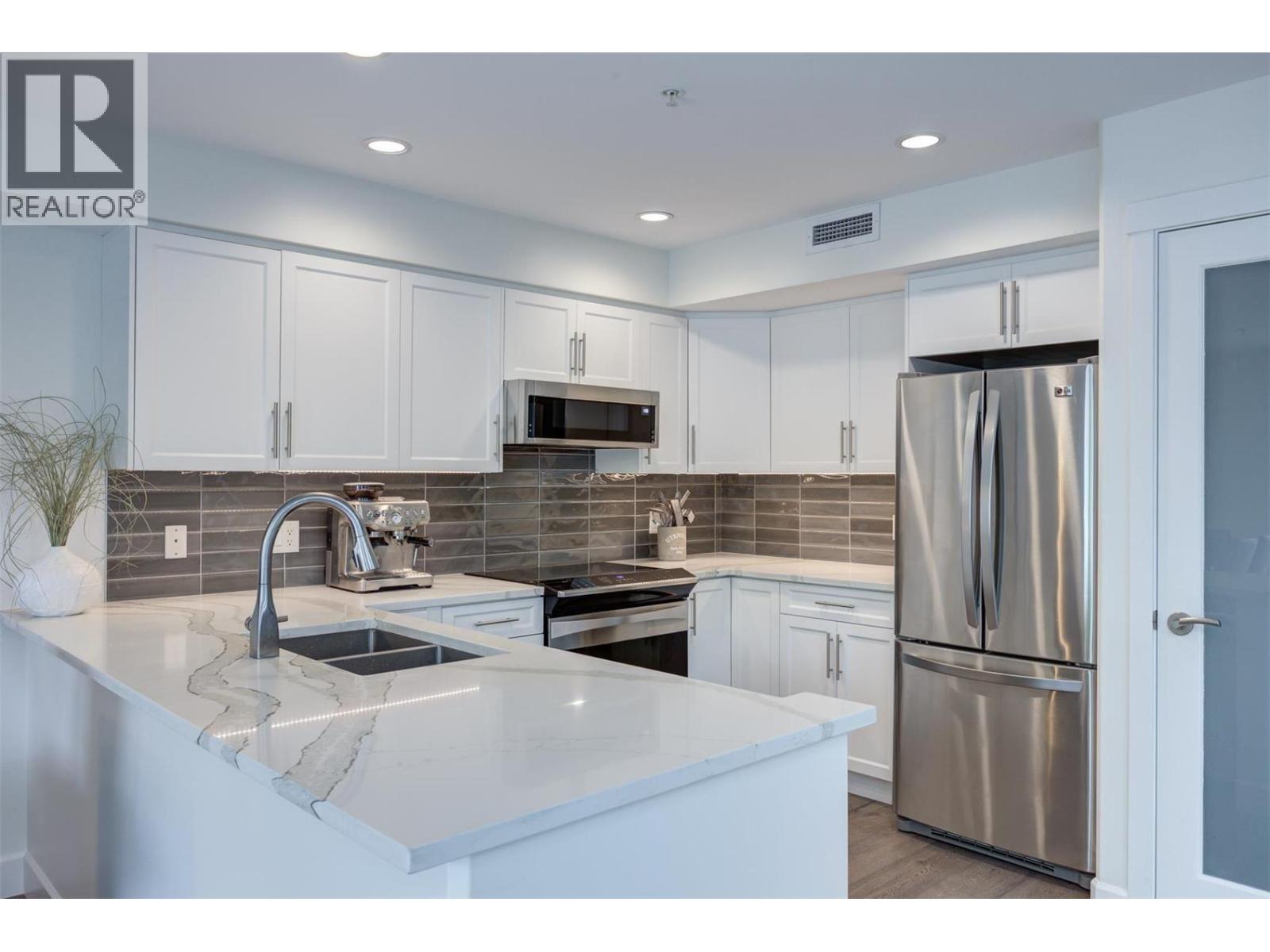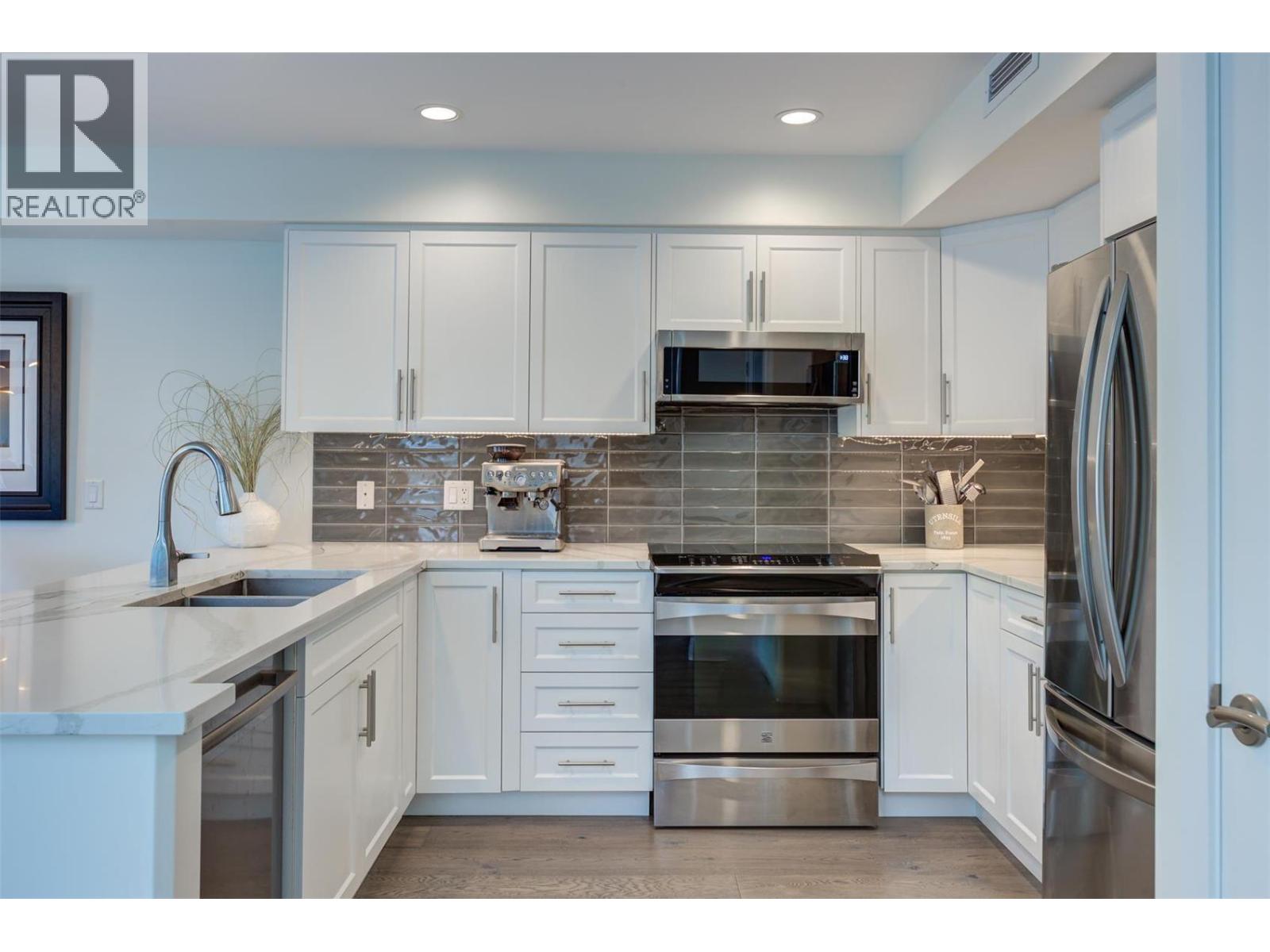 SOPHISTICATION AND LUXURY, 2 bedroom + den Brownstone style TRUE CORNER with PRIVATE ACCESS through YOUR OWN BEAUTIFUL FULLY FENCED PATIO AND COURTYARD. Located in the highly desirable, prestigious, popular and trendy Pandosy District known for its unique shopping, coffee houses, pubs, restaurants, groceries, + only a 1/2 block to Okanagan Lake, walking distance to Kelowna General Hospital and everything else. Gorgeous floor to ceiling windows, boasting natural light, 18-foot ceilings, engineered rich Oak hardwood floors as well as an open concept design. The main living area includes a natural mineral limestone feature wall including built-in electric fireplace + a newer kitchen complete with marbled quartz countertops and SS appliances. Open style spacious lofted primary bedroom, with natural mineral limestone painted feature wall, double sided closets + a modern renovated 5-piece bathroom with Bespoke Italian Marble. There is also a large second bedroom, den, full size laundry room, + 3-piece bath with Bespoke Italian tile on the second level. EV CHARGER ALREADY INSTALLED in the secured parking garage with a 2nd access to the unit from inside if so desired. Strata fees include private storage locker on the same floor, Geothermal heating/cooling, water, sewer, garbage collection & recycling, building insurance, management, snow removal, building repair & maintenance. A fabulous townhome that offers the turn-key lifestyle you desire in a neighborhood that is continually increasing in value. Pets and rentals welcome! Pride of ownership is evident, and this home must be seen to be appreciated. PET FRIENDLY! (id:6770)