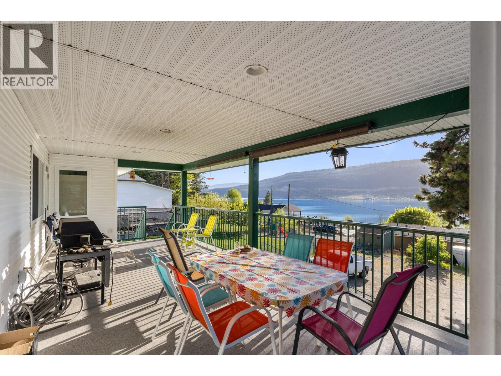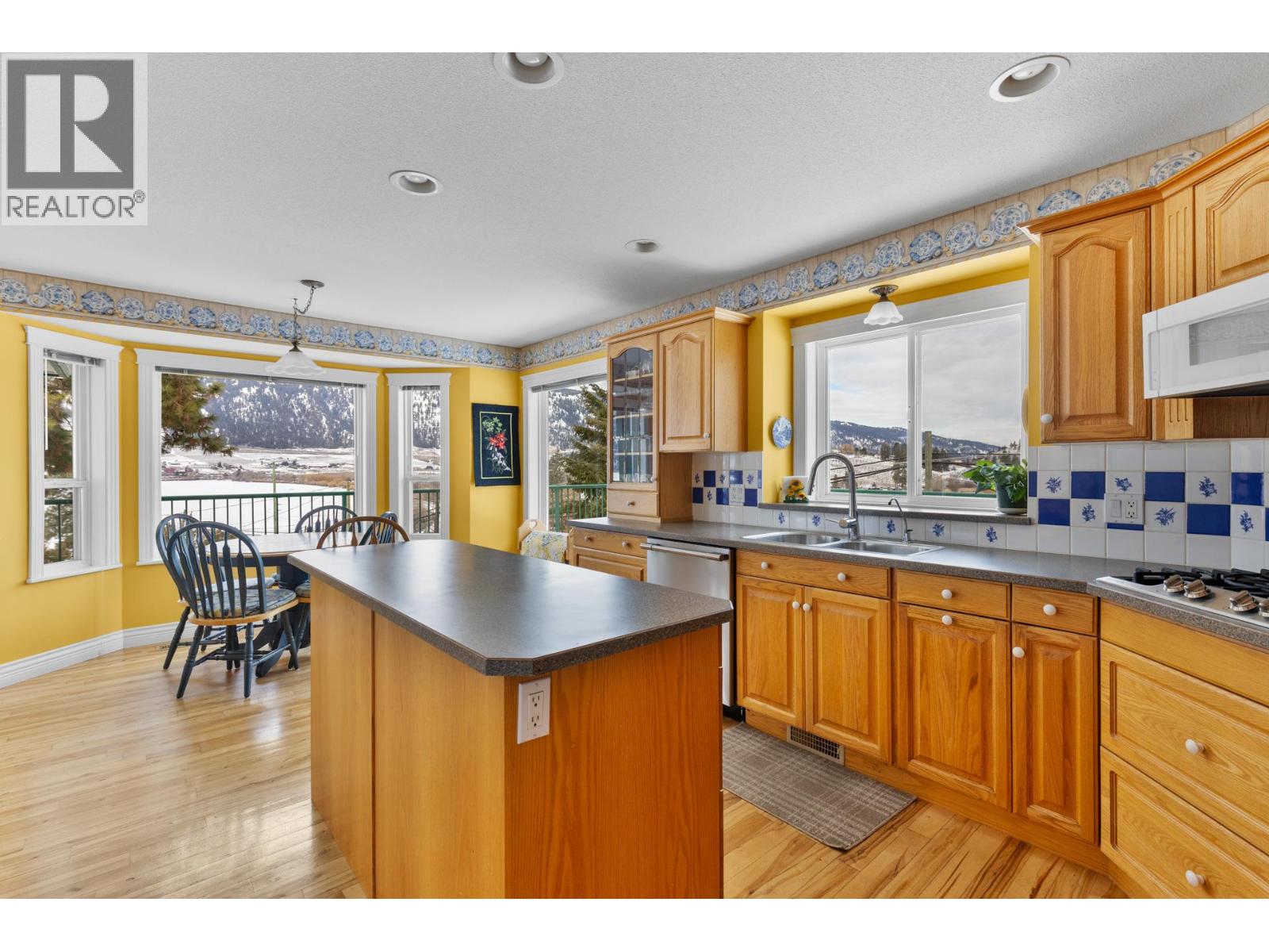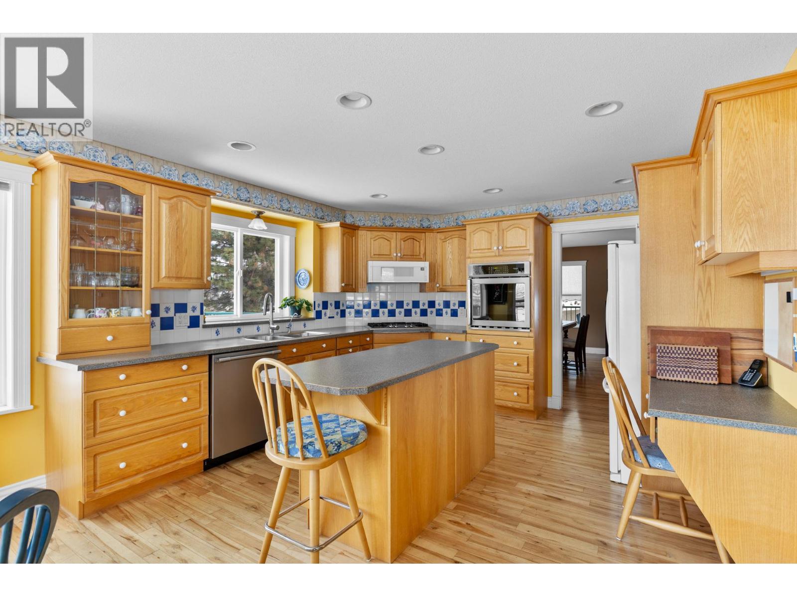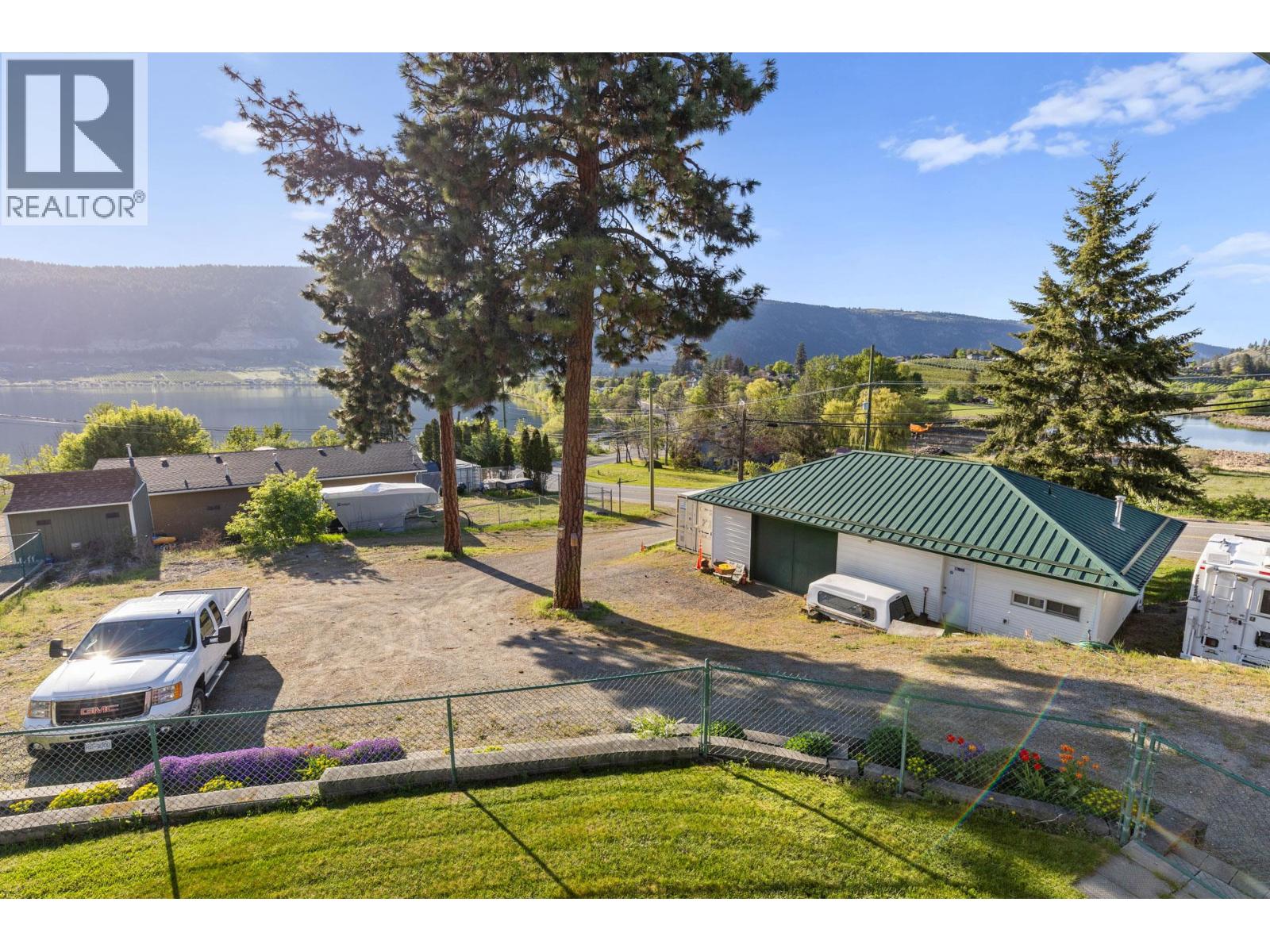 From the moment of arrival, this exceptional original-owner three bedroom home, steps from Wood & Kalamalka Lake, captivates with its refined presence, desirable location and sweeping views. Set on a rare 0.618-acre corner lot, the home blends timeless elegance with thoughtful design. A striking metal green roof, crisp white siding and graceful curb appeal frame a wraparound driveway, covered front porch and carport, while a second driveway leads to a substantial 1,000 square foot detached workshop and multiple garages—offering abundant space for vehicles, recreational toys or an RV. Crafted by Harmony Homes, the interior is equally impressive. The expansive main level features hardwood flooring, wide hallways and accessible doorways, creating an atmosphere of openness and ease. The primary bedroom opens to a west-facing deck that wraps around to the kitchen—an ideal setting for sunset entertaining and indoor-outdoor living. Designed with versatility in mind, the walkout lower level includes a secondary entrance, allowing for seamless conversion into a private one-bedroom suite—an ideal setup for a home-based business, caretaker’s suite, or extended family living—while a spacious mechanical room accessed from the garage can be securely locked off for owner storage. Outdoors, a fenced lawn and irrigated grounds form a private oasis rich with mature ponderosa pines, fruit trees, grapevines, a greenhouse and raised garden beds. The heated 80-amp workshop is a standout feature, complete with wide-plank wood flooring, barn doors, an I-beam and a half bath with on-demand hot water—ideal for artisans, collectors, or hobbyists. Tremendous amount of parking and turn around for a boat or recreational vehicles. Recent upgrades include a new furnace, heat pump for A/C and hot water tank for peace of mind. Moments from Kalamalka Lake’s Kaloya Regional Park, the Okanagan Rail Trail and endless recreation, this property offers a rare combination of views, location and lifestyle. (id:6770)