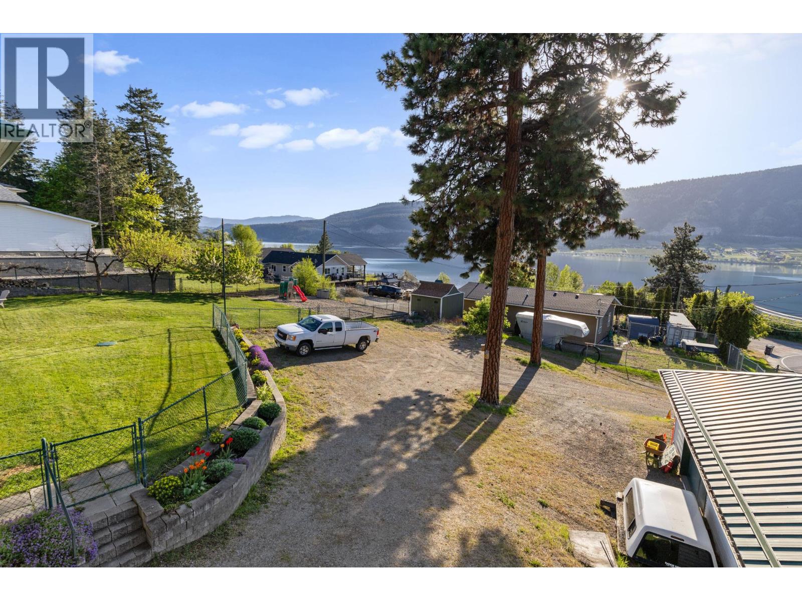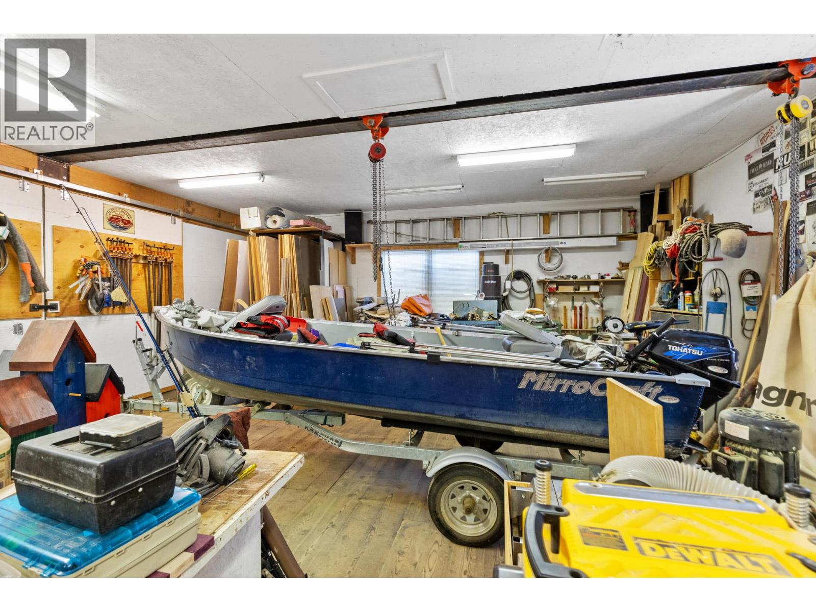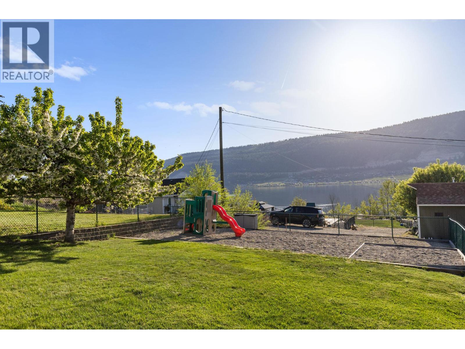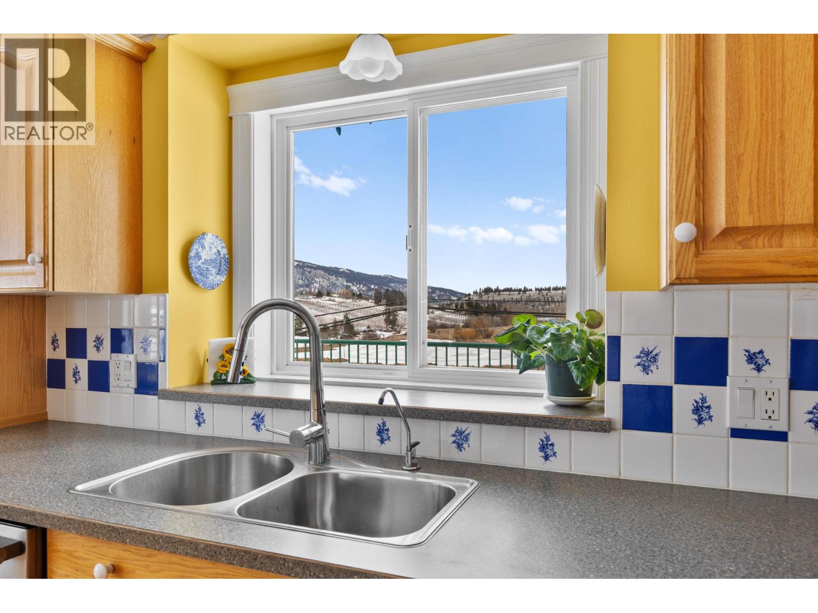 From the moment of arrival, this exceptional original-owner three bedroom home, steps from Wood & Kalamalka Lake, captivates with its refined presence, desirable location and sweeping views. Set on a rare 0.618-acre corner lot, the home blends timeless elegance with thoughtful design. A striking metal green roof, crisp white siding and graceful curb appeal frame a wraparound driveway, covered front porch and carport, while a second driveway leads to a substantial 1,000 square foot detached workshop and multiple garages—offering abundant space for vehicles, recreational toys or an RV. Crafted by Harmony Homes, the interior is equally impressive. The expansive main level features hardwood flooring, wide hallways and accessible doorways, creating an atmosphere of openness and ease. The primary bedroom opens to a west-facing deck that wraps around to the kitchen—an ideal setting for sunset entertaining and indoor-outdoor living. Designed with versatility in mind, the walkout lower level includes a secondary entrance, allowing for seamless conversion into a private one-bedroom suite—an ideal setup for a home-based business, caretaker’s suite, or extended family living—while a spacious mechanical room accessed from the garage can be securely locked off for owner storage. Outdoors, a fenced lawn and irrigated grounds form a private oasis rich with mature ponderosa pines, fruit trees, grapevines, a greenhouse and raised garden beds. The heated 80-amp workshop is a standout feature, complete with wide-plank wood flooring, barn doors, an I-beam and a half bath with on-demand hot water—ideal for artisans, collectors, or hobbyists. Tremendous amount of parking and turn around for a boat or recreational vehicles. Recent upgrades include a new furnace, heat pump for A/C and hot water tank for peace of mind. Moments from Kalamalka Lake’s Kaloya Regional Park, the Okanagan Rail Trail and endless recreation, this property offers a rare combination of views, location and lifestyle. (id:6770)