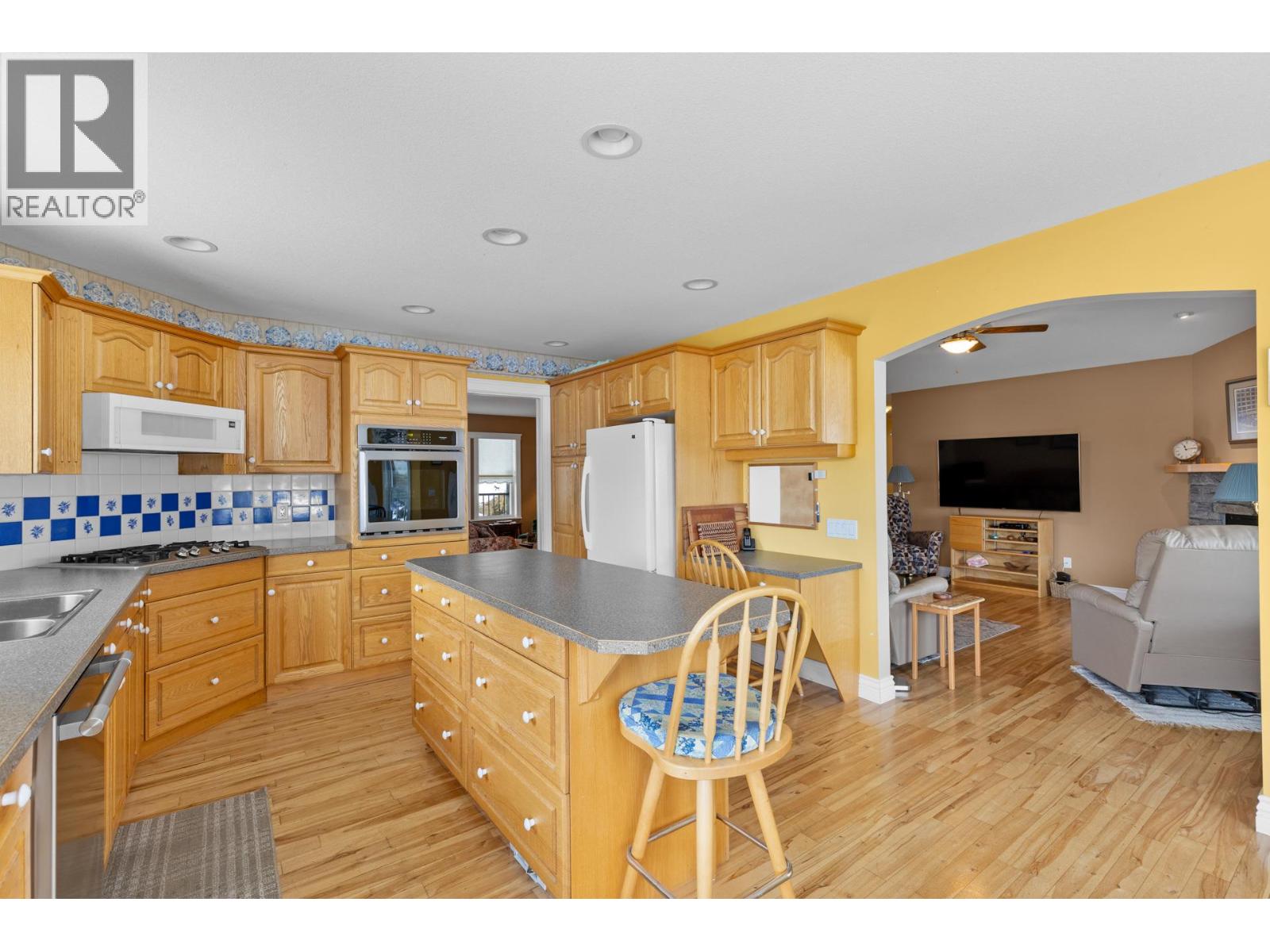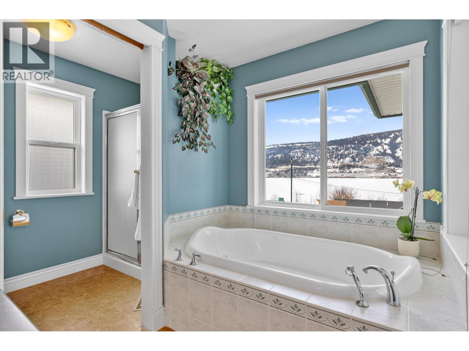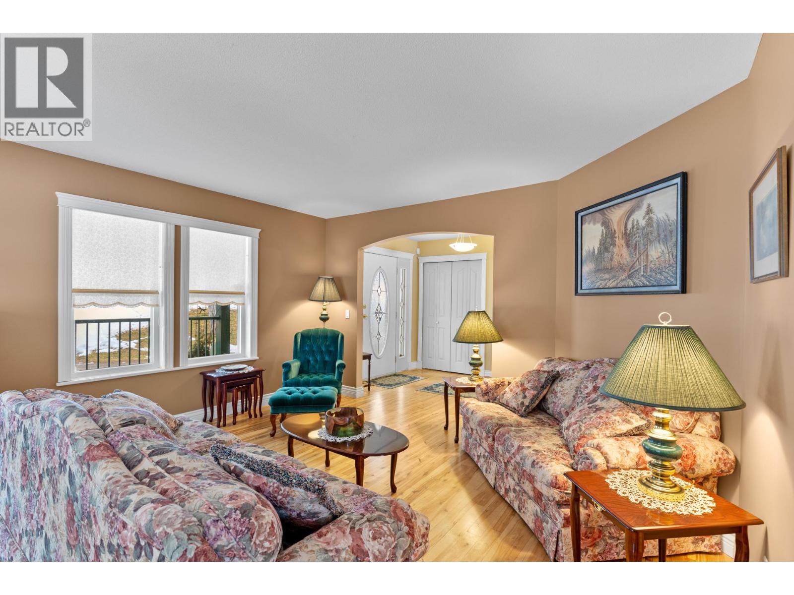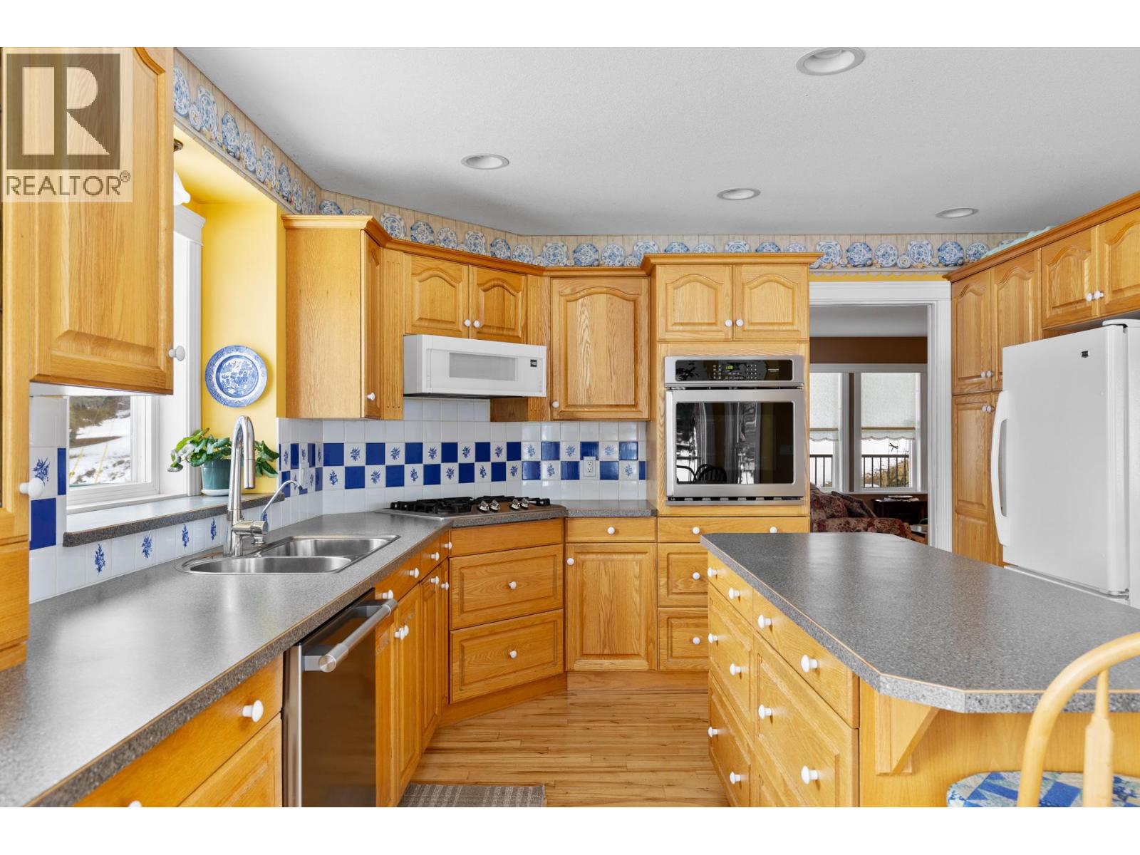 From the moment of arrival, this exceptional original-owner three bedroom home, steps from Wood & Kalamalka Lake, captivates with its refined presence, desirable location and sweeping views. Set on a rare 0.618-acre corner lot, the home blends timeless elegance with thoughtful design. A striking metal green roof, crisp white siding and graceful curb appeal frame a wraparound driveway, covered front porch and carport, while a second driveway leads to a substantial 1,000 square foot detached workshop and multiple garages—offering abundant space for vehicles, recreational toys or an RV. Crafted by Harmony Homes, the interior is equally impressive. The expansive main level features hardwood flooring, wide hallways and accessible doorways, creating an atmosphere of openness and ease. The primary bedroom opens to a west-facing deck that wraps around to the kitchen—an ideal setting for sunset entertaining and indoor-outdoor living. Designed with versatility in mind, the walkout lower level includes a secondary entrance, allowing for seamless conversion into a private one-bedroom suite—an ideal setup for a home-based business, caretaker’s suite, or extended family living—while a spacious mechanical room accessed from the garage can be securely locked off for owner storage. Outdoors, a fenced lawn and irrigated grounds form a private oasis rich with mature ponderosa pines, fruit trees, grapevines, a greenhouse and raised garden beds. The heated 80-amp workshop is a standout feature, complete with wide-plank wood flooring, barn doors, an I-beam and a half bath with on-demand hot water—ideal for artisans, collectors, or hobbyists. Tremendous amount of parking and turn around for a boat or recreational vehicles. Recent upgrades include a new furnace, heat pump for A/C and hot water tank for peace of mind. Moments from Kalamalka Lake’s Kaloya Regional Park, the Okanagan Rail Trail and endless recreation, this property offers a rare combination of views, location and lifestyle. (id:6770)