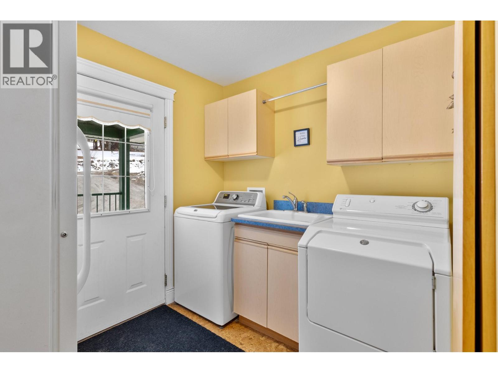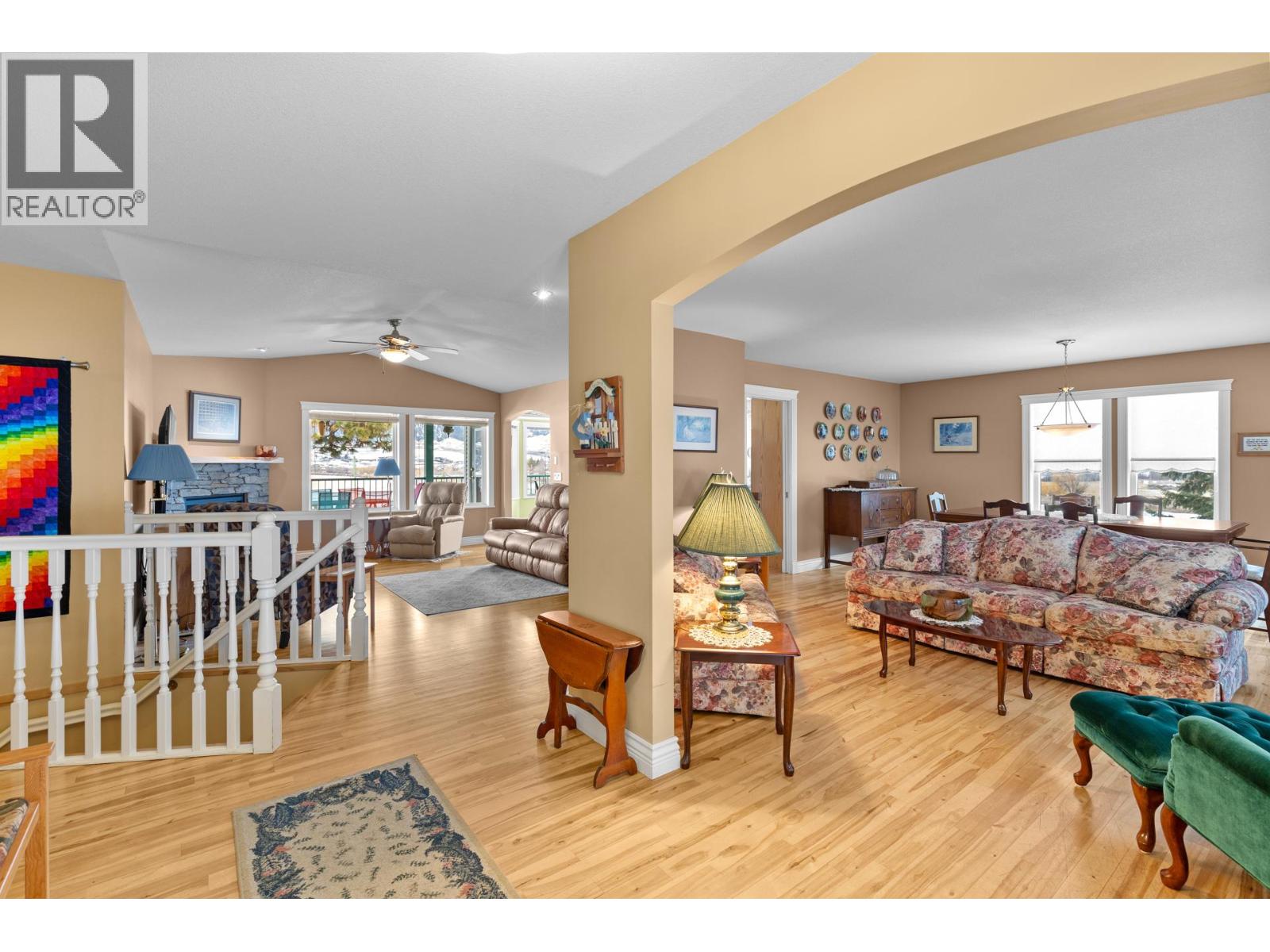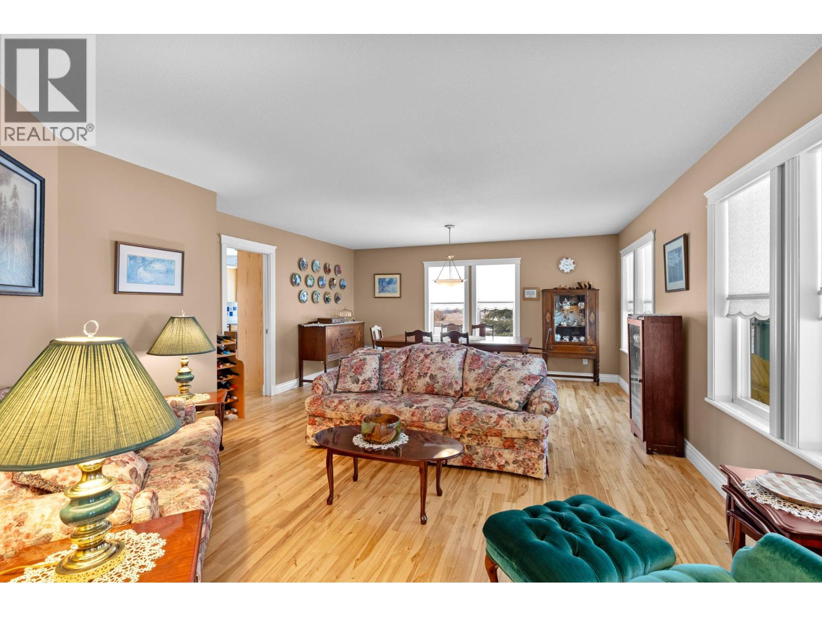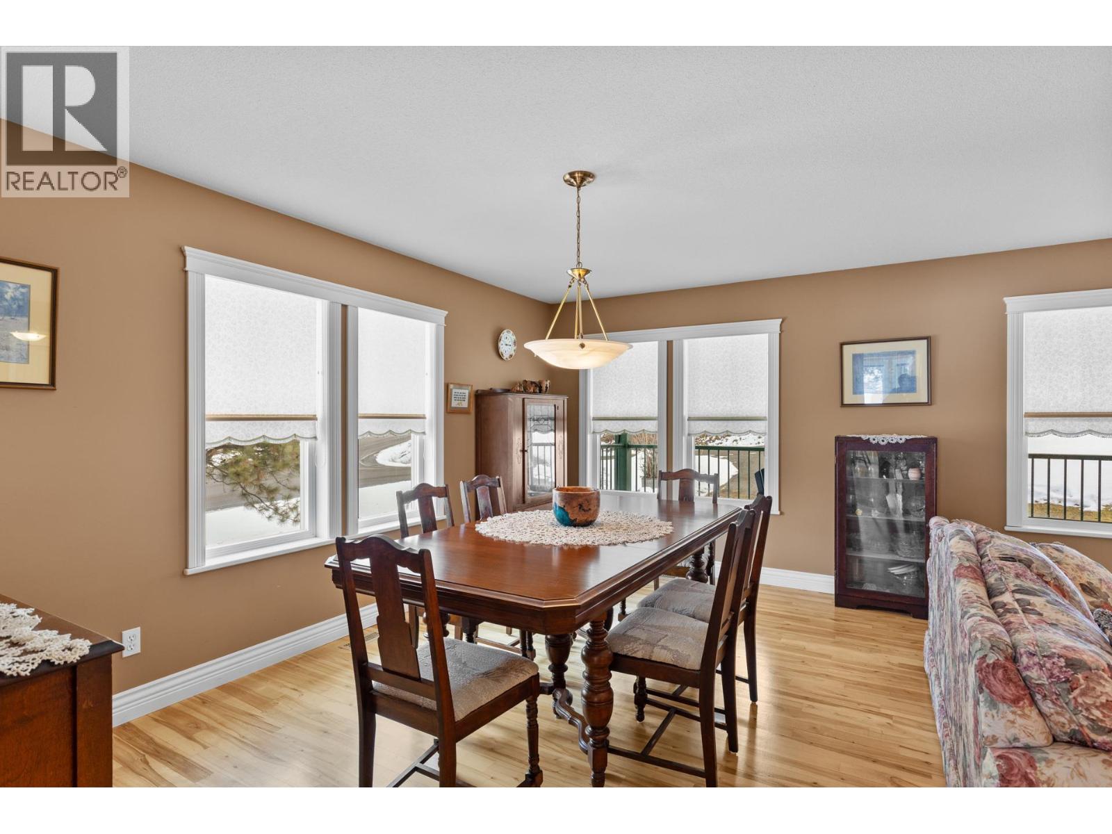 From the moment of arrival, this exceptional original-owner three bedroom home, steps from Wood & Kalamalka Lake, captivates with its refined presence, desirable location and sweeping views. Set on a rare 0.618-acre corner lot, the home blends timeless elegance with thoughtful design. A striking metal green roof, crisp white siding and graceful curb appeal frame a wraparound driveway, covered front porch and carport, while a second driveway leads to a substantial 1,000 square foot detached workshop and multiple garages—offering abundant space for vehicles, recreational toys or an RV. Crafted by Harmony Homes, the interior is equally impressive. The expansive main level features hardwood flooring, wide hallways and accessible doorways, creating an atmosphere of openness and ease. The primary bedroom opens to a west-facing deck that wraps around to the kitchen—an ideal setting for sunset entertaining and indoor-outdoor living. Designed with versatility in mind, the walkout lower level includes a secondary entrance, allowing for seamless conversion into a private one-bedroom suite—an ideal setup for a home-based business, caretaker’s suite, or extended family living—while a spacious mechanical room accessed from the garage can be securely locked off for owner storage. Outdoors, a fenced lawn and irrigated grounds form a private oasis rich with mature ponderosa pines, fruit trees, grapevines, a greenhouse and raised garden beds. The heated 80-amp workshop is a standout feature, complete with wide-plank wood flooring, barn doors, an I-beam and a half bath with on-demand hot water—ideal for artisans, collectors, or hobbyists. Tremendous amount of parking and turn around for a boat or recreational vehicles. Recent upgrades include a new furnace, heat pump for A/C and hot water tank for peace of mind. Moments from Kalamalka Lake’s Kaloya Regional Park, the Okanagan Rail Trail and endless recreation, this property offers a rare combination of views, location and lifestyle. (id:6770)
