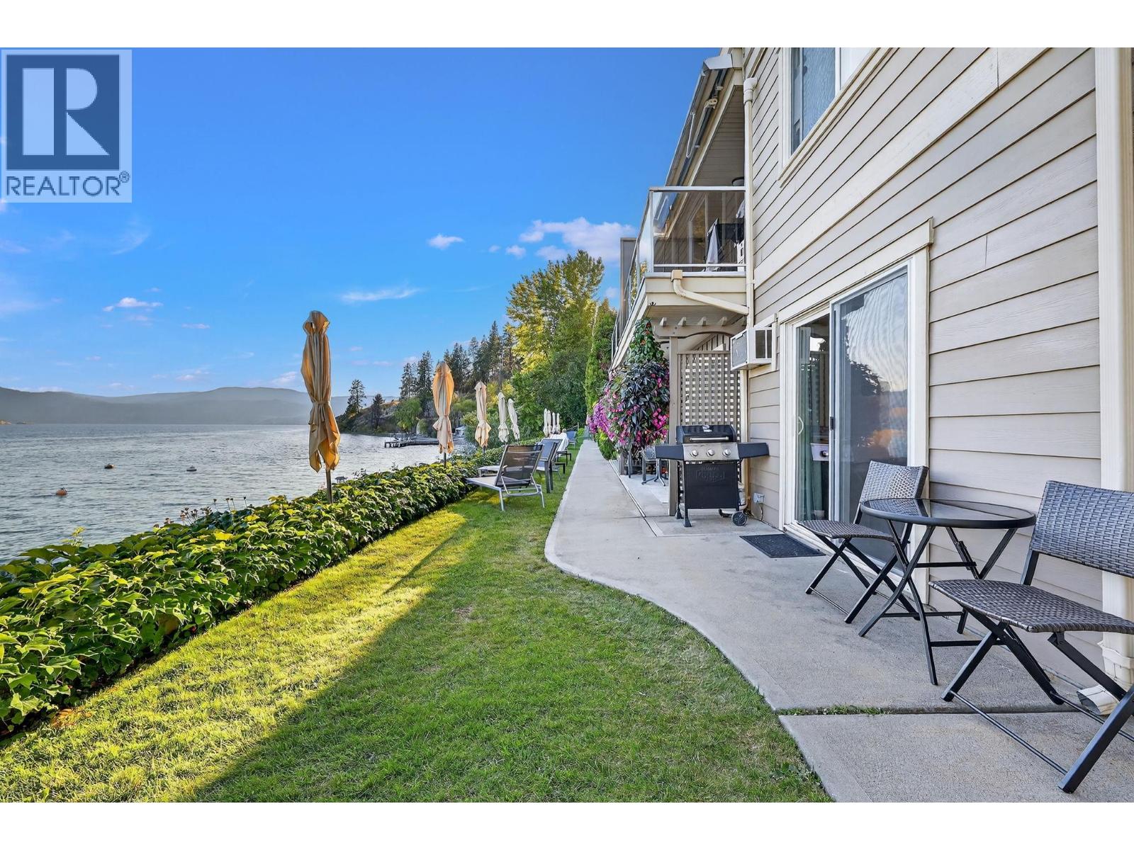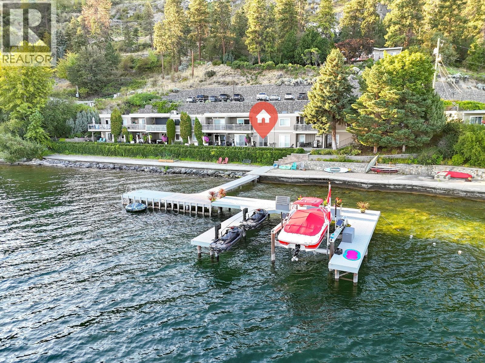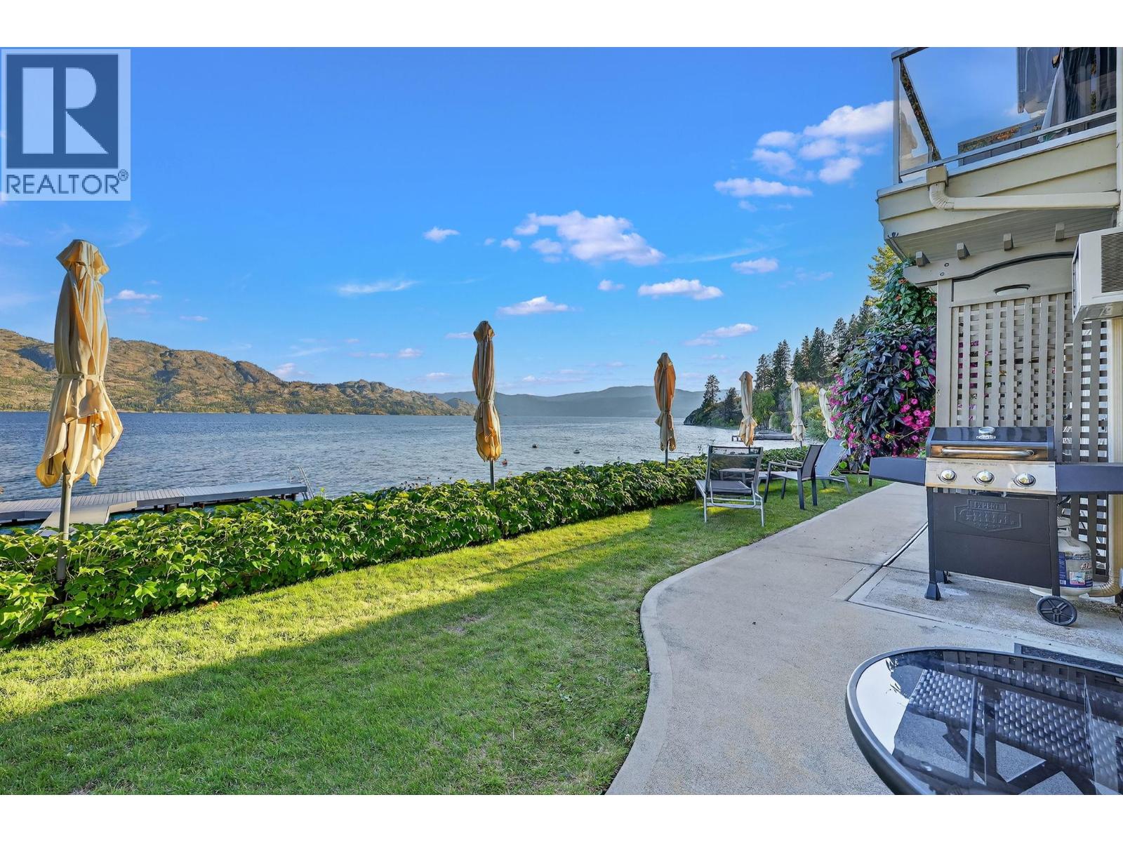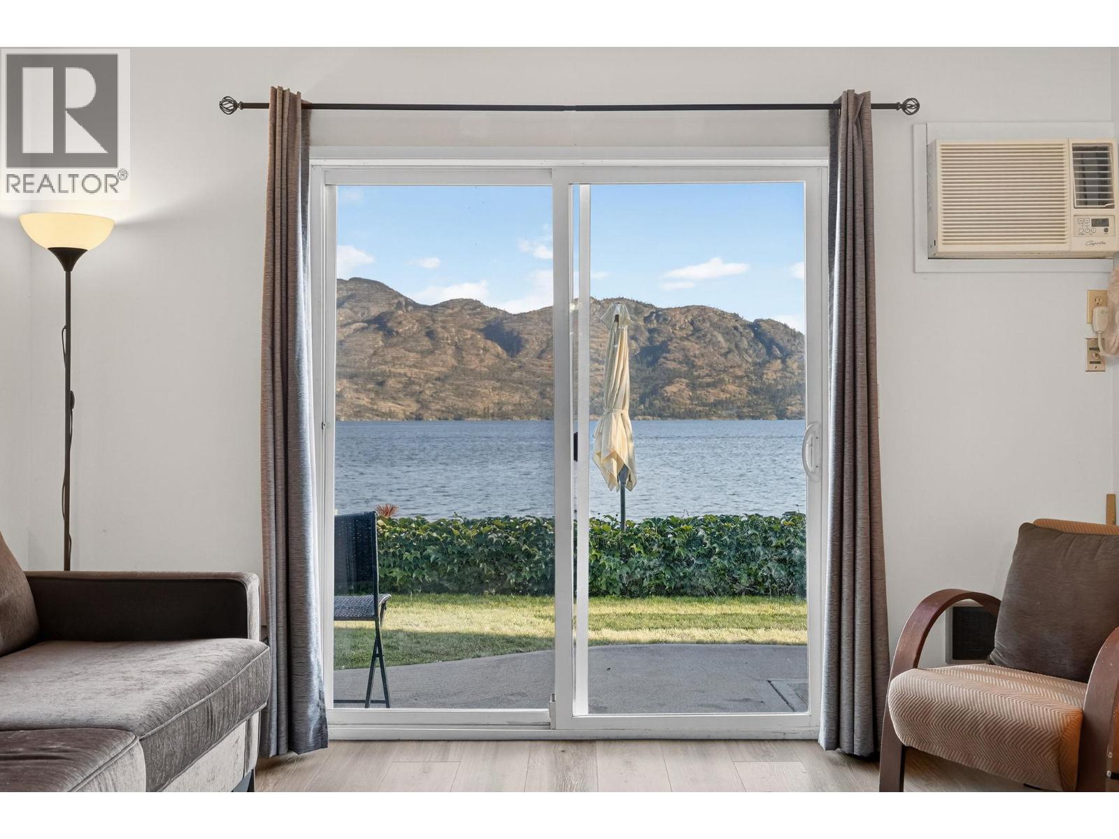 Own your own piece of Okanagan lake front! Best kept secret in the area. This open concept, air conditioned condo in a secure gated community has everything you need to spend your summers on the lake. Sleeps 4, fully furnished, with a new hide a bed, a murphy bed with a new mattress, newer smart TV, tables, chairs and even pots, pans, dishware, glasses, cutlery and a BBQ. New laminate flooring this past year. Wake upright beside the lake and enjoy the lakefront breeze while having a morning cup of coffee on your patio beside the water. Extra storage and 1 assigned parking spot. The resort life comes with many amenities such as boat moorage in the private marina, a clubhouse, private shared dock, boat launch, boat trailer parking, fire pits, coin laundry and ice machine. Telus fibre optic WIFI is available and for extra security the marina and guest parking is monitored by cameras. Great for rental income when you aren't using it yourself. Come see for yourself what lake life can be like. Don't miss out on this great opportunity. These units don't come up for sale very often. (id:6770)