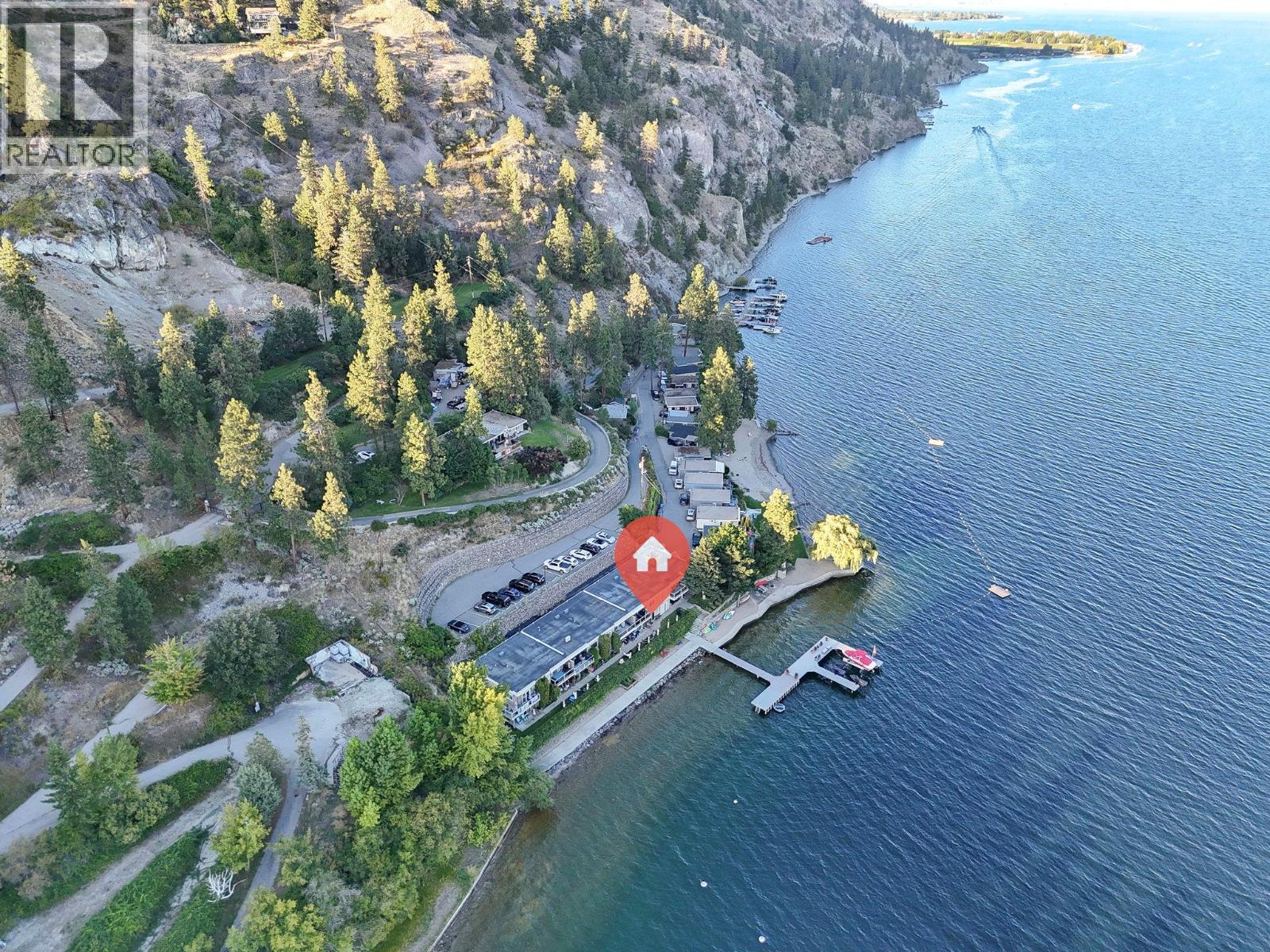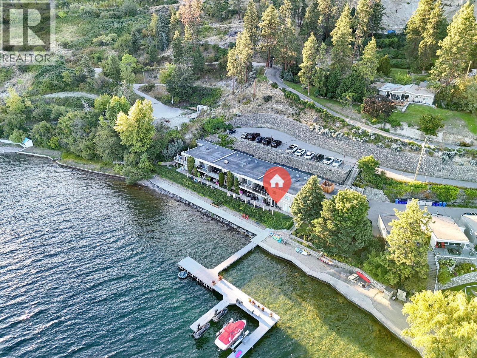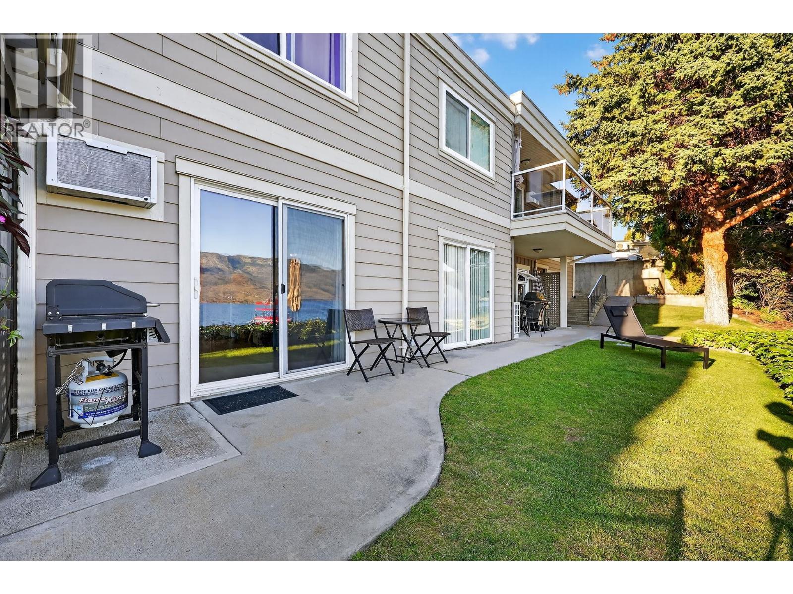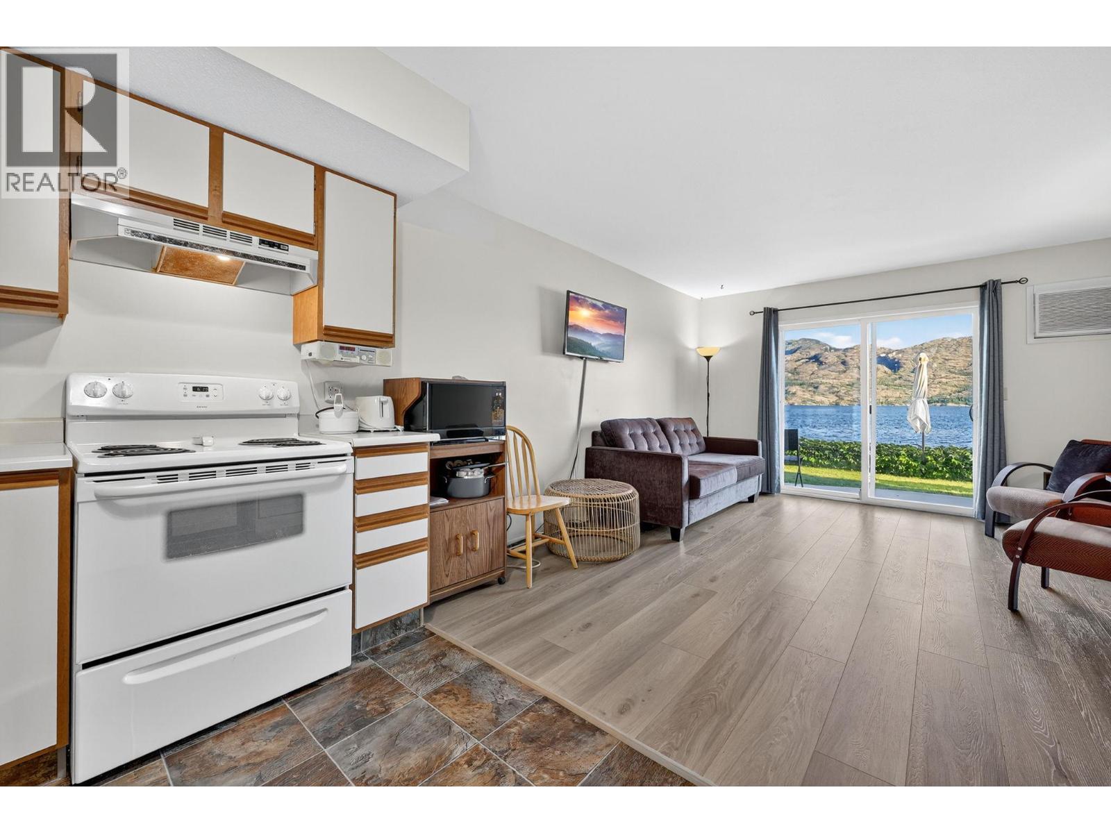 Own your own piece of Okanagan lake front! Best kept secret in the area. This open concept, air conditioned condo in a secure gated community has everything you need to spend your summers on the lake. Sleeps 4, fully furnished, with a new hide a bed, a murphy bed with a new mattress, newer smart TV, tables, chairs and even pots, pans, dishware, glasses, cutlery and a BBQ. New laminate flooring this past year. Wake upright beside the lake and enjoy the lakefront breeze while having a morning cup of coffee on your patio beside the water. Extra storage and 1 assigned parking spot. The resort life comes with many amenities such as boat moorage in the private marina, a clubhouse, private shared dock, boat launch, boat trailer parking, fire pits, coin laundry and ice machine. Telus fibre optic WIFI is available and for extra security the marina and guest parking is monitored by cameras. Great for rental income when you aren't using it yourself. Come see for yourself what lake life can be like. Don't miss out on this great opportunity. These units don't come up for sale very often. (id:6770)