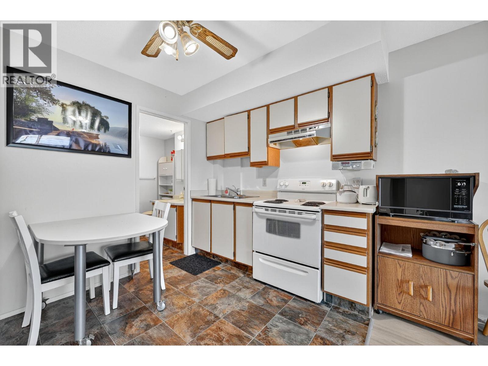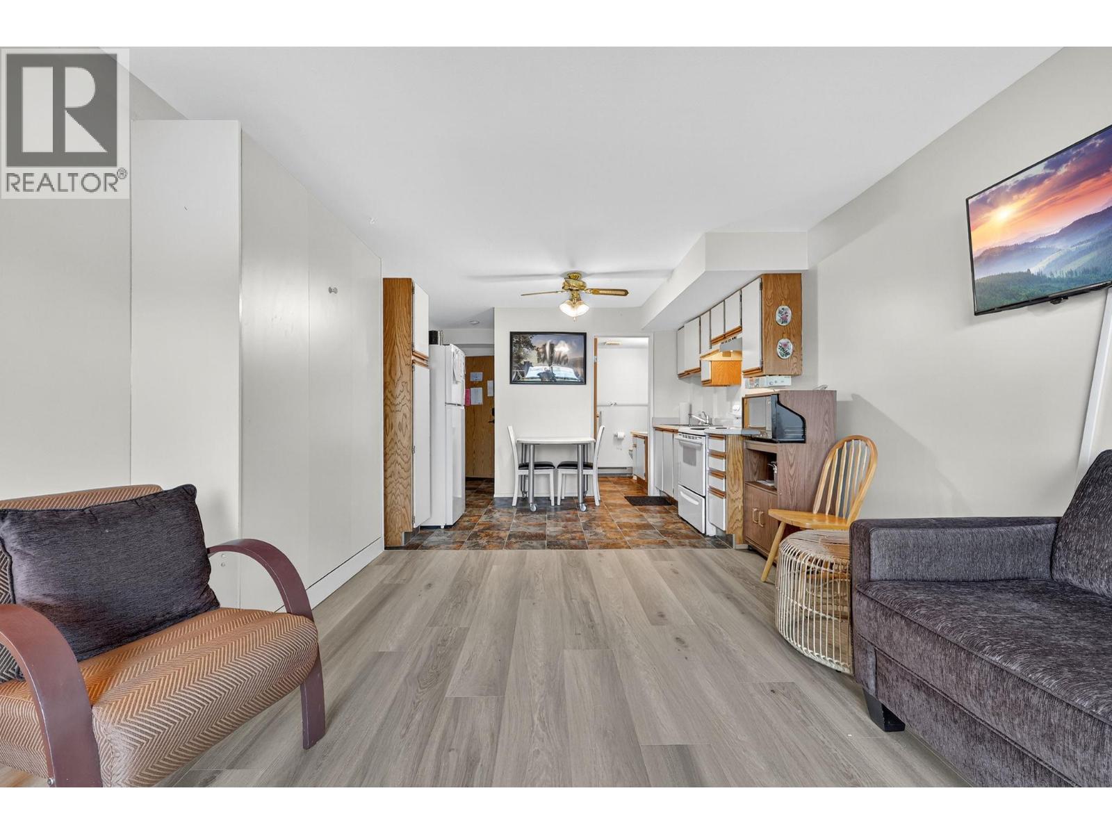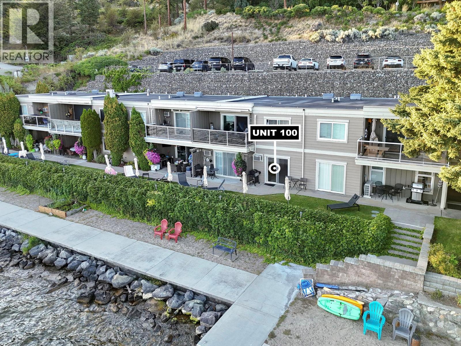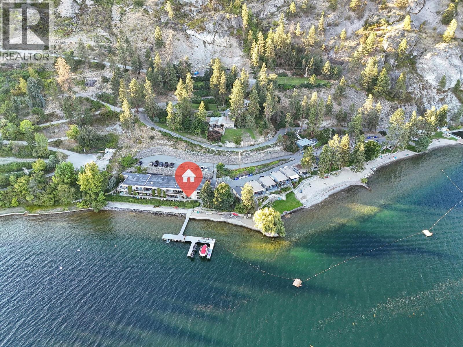 Own your own piece of Okanagan lake front! Best kept secret in the area. This open concept, air conditioned condo in a secure gated community has everything you need to spend your summers on the lake. Sleeps 4, fully furnished, with a new hide a bed, a murphy bed with a new mattress, newer smart TV, tables, chairs and even pots, pans, dishware, glasses, cutlery and a BBQ. New laminate flooring this past year. Wake upright beside the lake and enjoy the lakefront breeze while having a morning cup of coffee on your patio beside the water. Extra storage and 1 assigned parking spot. The resort life comes with many amenities such as boat moorage in the private marina, a clubhouse, private shared dock, boat launch, boat trailer parking, fire pits, coin laundry and ice machine. Telus fibre optic WIFI is available and for extra security the marina and guest parking is monitored by cameras. Great for rental income when you aren't using it yourself. Come see for yourself what lake life can be like. Don't miss out on this great opportunity. These units don't come up for sale very often. (id:6770)