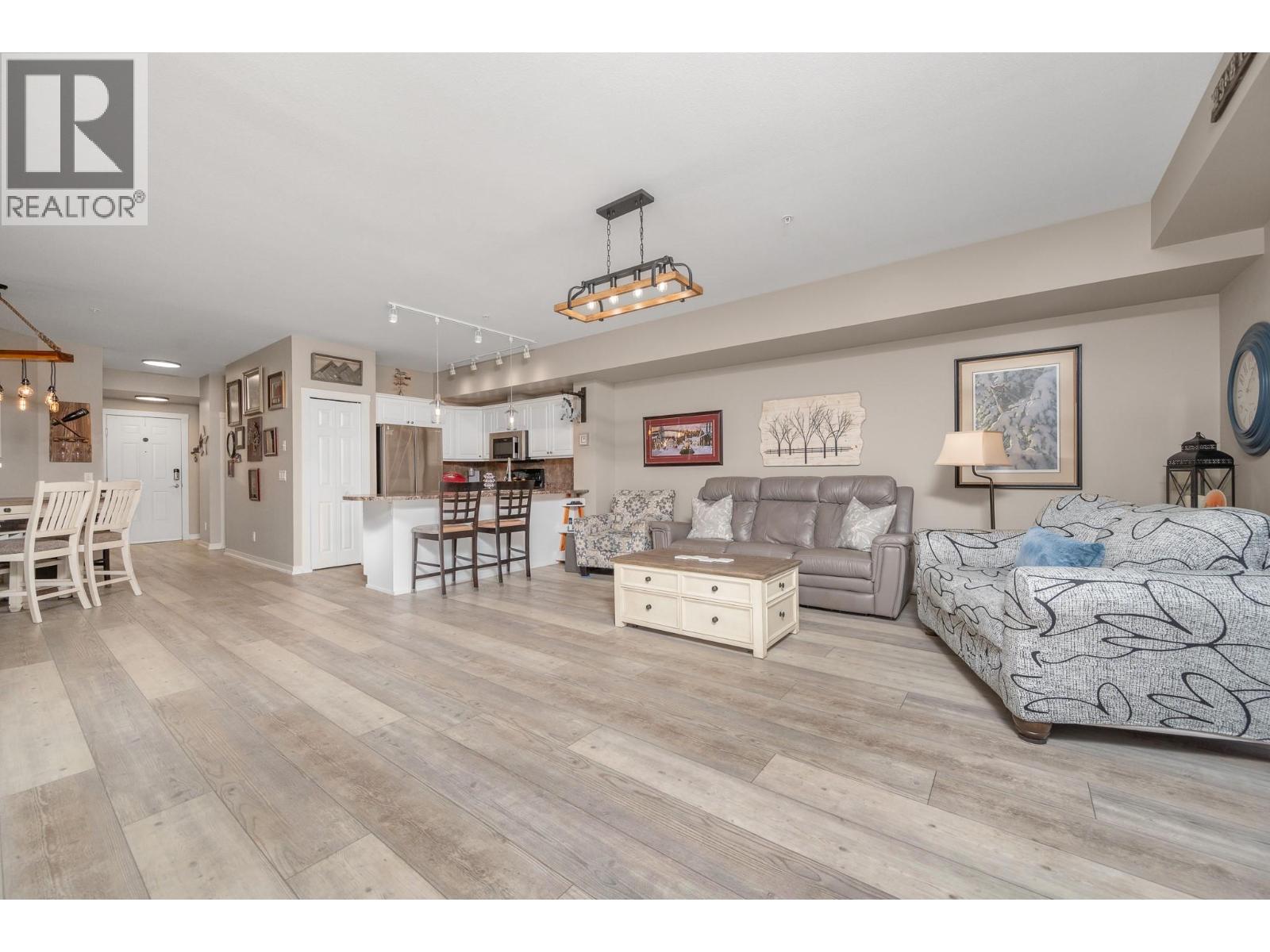Enjoy resort-style living in this spacious 1,359 sq. ft., 2-bedroom, 2-bathroom condo at the sought-after Emerald Point community. Located on the second floor and facing northwest towards Wood Lake, this beautifully maintained home offers breathtaking sunset views and an unbeatable location. The open-concept layout features 9’ ceilings and floor-to-ceiling windows, flooding the space with natural light. The generous primary bedroom easily accommodates a king-size bed and includes a walk-in closet with custom built-ins and a full ensuite. The second bedroom is equally spacious with a double closet and built-ins—perfect for guests or a home office. The kitchen boasts stainless steel appliances, including a new over-the-range microwave/convection oven, providing the convenience of two ovens for entertaining. Rigid engineered luxury vinyl plank flooring (2021), an electric fireplace with built-ins and under-cabinet lighting, and extensive closet organizers throughout. Additional highlights include: Geothermal heating and central air conditioning with a new heat pump (2021)/Large laundry/utility room with new stackable washer & dryer (2023)/New hot water tank (2024) and new refrigerator (2023)/ . Enjoy the heated outdoor pool and hot tub, exercise room, dry sauna, and a social room with a full kitchen and large patio, ideal for gatherings. With no age restrictions, pet-friendly policies, and proximity to the airport, UBCO, and shopping ,this one has it all! (id:6770)