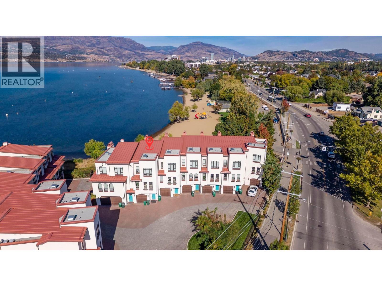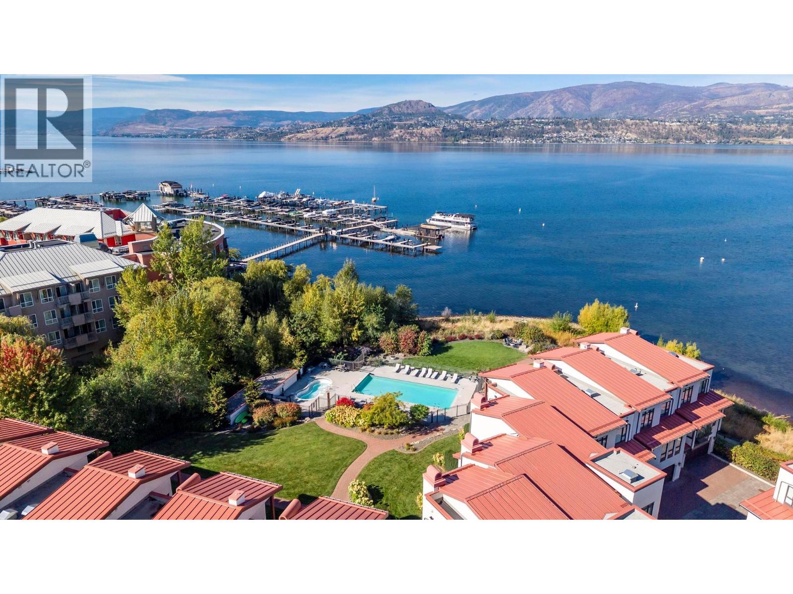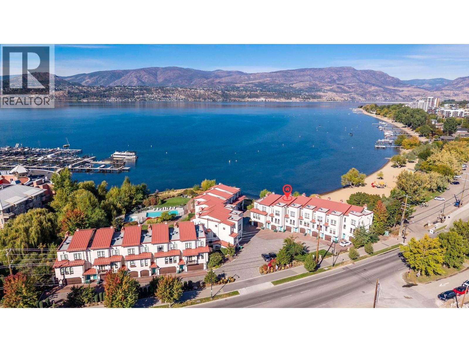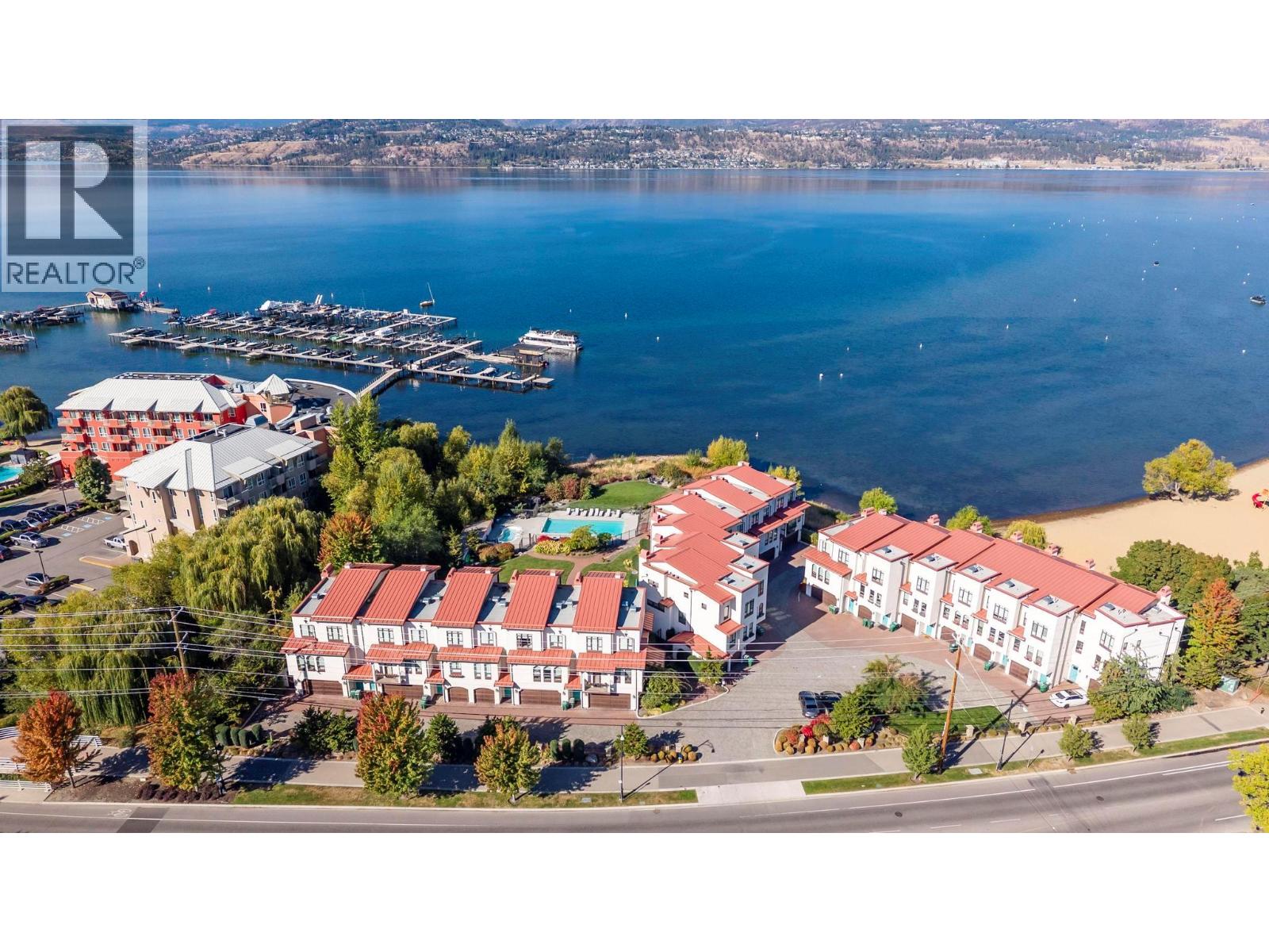 Live the ultimate Okanagan lakefront lifestyle at Lakeshore at Manteo! This luxurious 3 bedroom, 3 bathroom townhome includes your own private boat slip and lift, offering effortless access to Okanagan Lake right from your doorstep. Inside, you’ll find soaring ceilings and a bright, open concept layout with an elevated kitchen and dining area overlooking the living space below. The chef inspired kitchen features a Wolf gas range, premium appliances, an elegant recessed wine display with accent lighting, a wine fridge, and quartz countertops, blending modern elegance with everyday functionality. Expansive folding glass doors open to a private patio overlooking Rotary Beach and the lake, creating a seamless indoor outdoor living experience. Upstairs, the primary suite provides a true retreat with a private balcony overlooking the water, perfect for morning coffee or unwinding at sunset. Two additional bedrooms and a full bathroom complete the upper level. With built in speakers throughout the home and patio, every detail is designed for entertainment and relaxation. There’s also parking for up to three vehicles, a rare luxury in a waterfront community. Enjoy resort style amenities including an outdoor pool, hot tub, and lakeside fire pits, all just steps from the sand and shoreline. With direct access to Rotary Beach and Okanagan Lake in Kelowna’s coveted Lower Mission, you’re minutes from Gyro Beach, the Eldorado, and Manteo Resort. This is lakeside living at its finest. (id:6770)