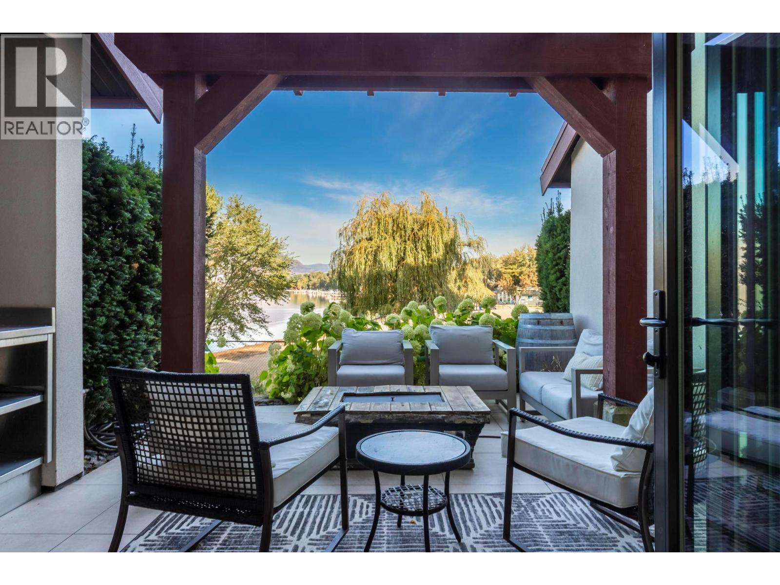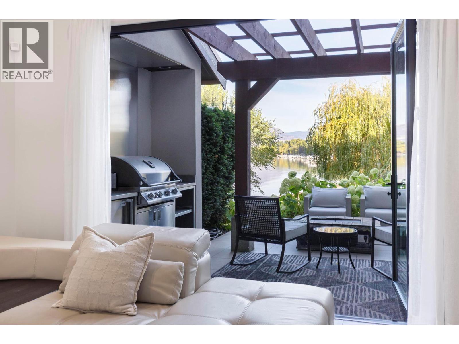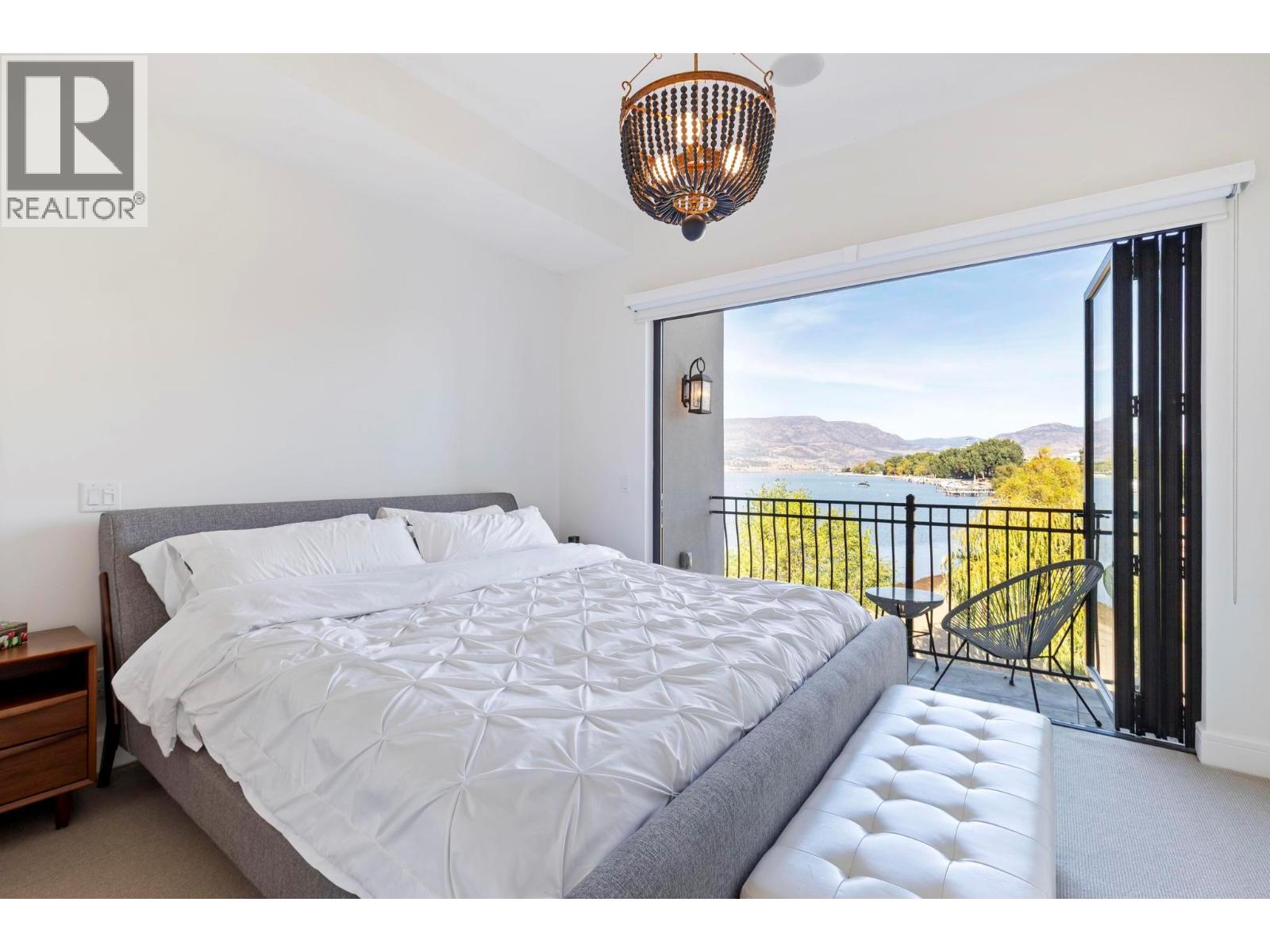 Live the ultimate Okanagan lakefront lifestyle at Lakeshore at Manteo! This luxurious 3 bedroom, 3 bathroom townhome includes your own private boat slip and lift, offering effortless access to Okanagan Lake right from your doorstep. Inside, you’ll find soaring ceilings and a bright, open concept layout with an elevated kitchen and dining area overlooking the living space below. The chef inspired kitchen features a Wolf gas range, premium appliances, an elegant recessed wine display with accent lighting, a wine fridge, and quartz countertops, blending modern elegance with everyday functionality. Expansive folding glass doors open to a private patio overlooking Rotary Beach and the lake, creating a seamless indoor outdoor living experience. Upstairs, the primary suite provides a true retreat with a private balcony overlooking the water, perfect for morning coffee or unwinding at sunset. Two additional bedrooms and a full bathroom complete the upper level. With built in speakers throughout the home and patio, every detail is designed for entertainment and relaxation. There’s also parking for up to three vehicles, a rare luxury in a waterfront community. Enjoy resort style amenities including an outdoor pool, hot tub, and lakeside fire pits, all just steps from the sand and shoreline. With direct access to Rotary Beach and Okanagan Lake in Kelowna’s coveted Lower Mission, you’re minutes from Gyro Beach, the Eldorado, and Manteo Resort. This is lakeside living at its finest. (id:6770)
