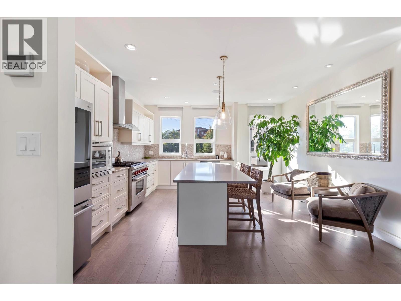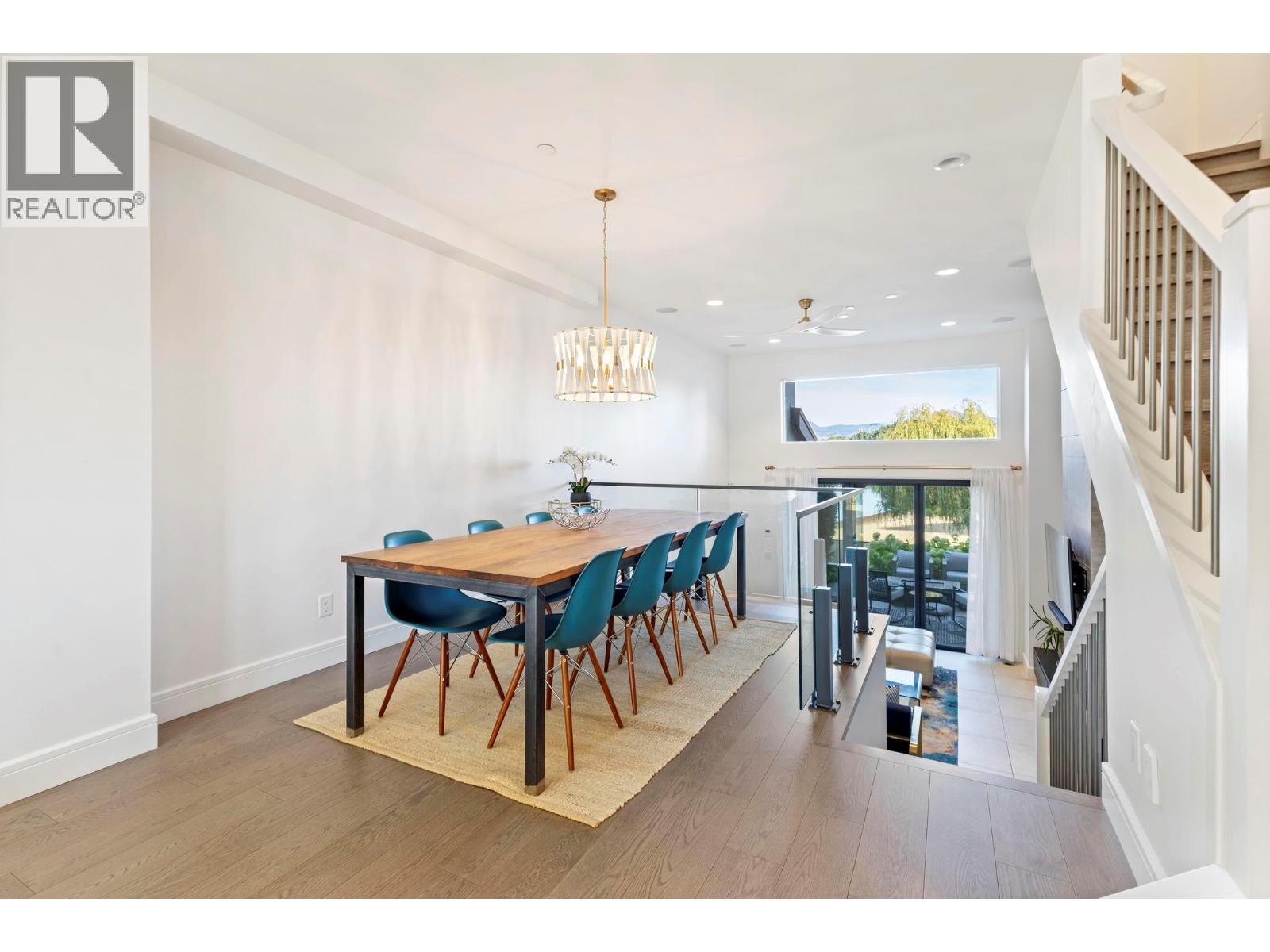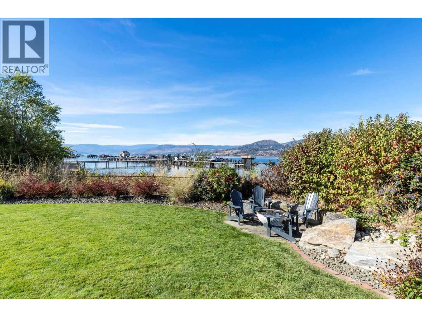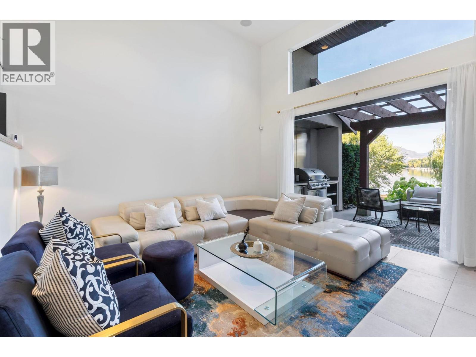 Live the ultimate Okanagan lakefront lifestyle at Lakeshore at Manteo! This luxurious 3 bedroom, 3 bathroom townhome includes your own private boat slip and lift, offering effortless access to Okanagan Lake right from your doorstep. Inside, you’ll find soaring ceilings and a bright, open concept layout with an elevated kitchen and dining area overlooking the living space below. The chef inspired kitchen features a Wolf gas range, premium appliances, an elegant recessed wine display with accent lighting, a wine fridge, and quartz countertops, blending modern elegance with everyday functionality. Expansive folding glass doors open to a private patio overlooking Rotary Beach and the lake, creating a seamless indoor outdoor living experience. Upstairs, the primary suite provides a true retreat with a private balcony overlooking the water, perfect for morning coffee or unwinding at sunset. Two additional bedrooms and a full bathroom complete the upper level. With built in speakers throughout the home and patio, every detail is designed for entertainment and relaxation. There’s also parking for up to three vehicles, a rare luxury in a waterfront community. Enjoy resort style amenities including an outdoor pool, hot tub, and lakeside fire pits, all just steps from the sand and shoreline. With direct access to Rotary Beach and Okanagan Lake in Kelowna’s coveted Lower Mission, you’re minutes from Gyro Beach, the Eldorado, and Manteo Resort. This is lakeside living at its finest. (id:6770)