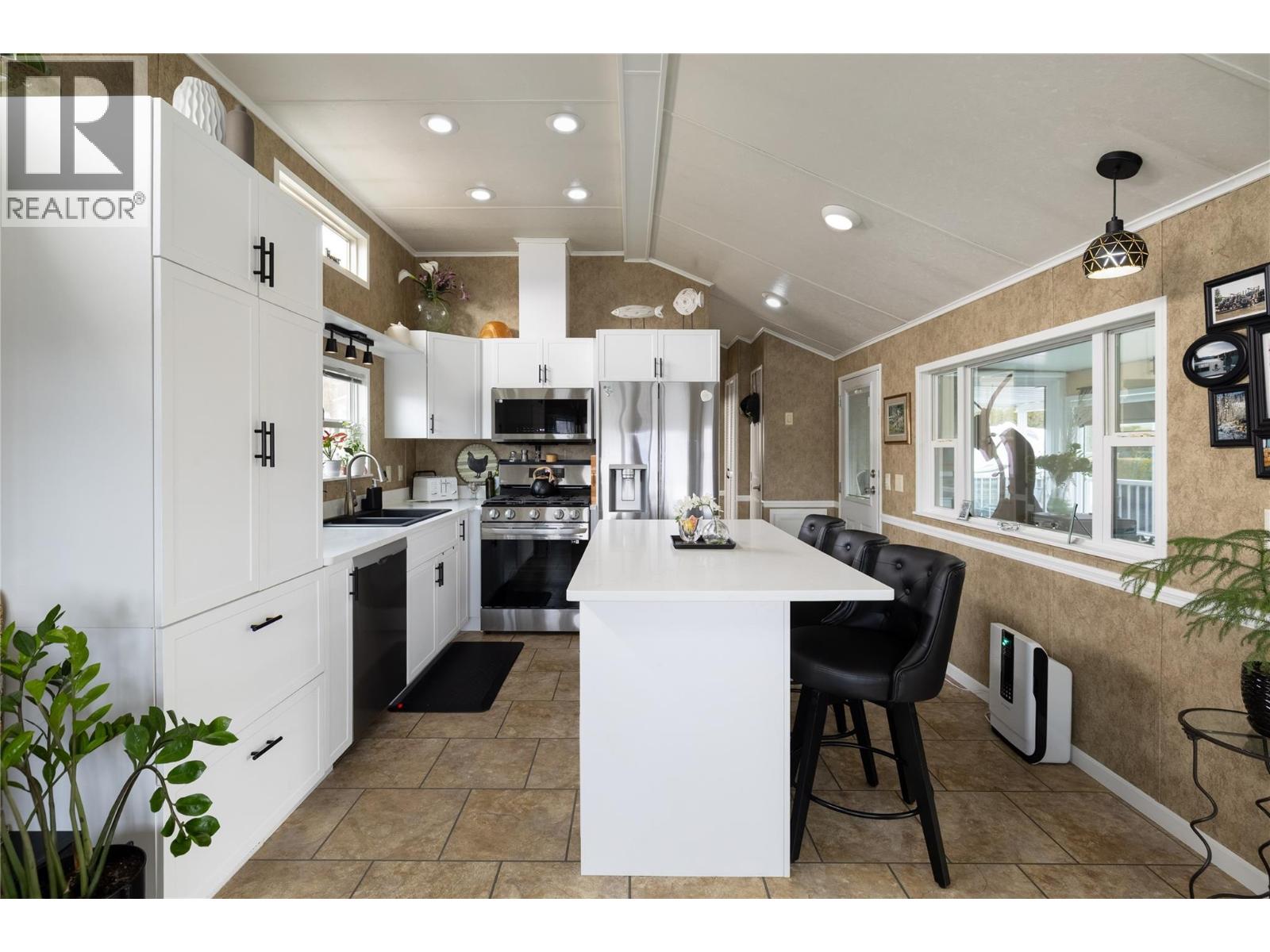Welcome to this beautifully updated home in the Swan Lake RV Resort community. This well-appointed 1 bedroom, 1 bathroom home features an open-concept floor plan with vaulted ceilings creating a bright and spacious atmosphere. The updated kitchen offers new cabinetry, quartz countertops, and stainless steel appliances. The functional 3-piece bathroom includes a corner shower and quartz countertop. A well insulated sunroom provides valuable additional living space, perfect for year-round use. Outside, relax on the covered porch and enjoy the convenience of a storage shed with power. Swan Lake RV Resort offers an impressive range of amenities, including a seasonal pool, hot tub, gym, community centre, pickleball area, library, off-leash dog area, and a well-equipped workshop for owners use. Monthly fees include your community facilities, water, sewer, garbage, recycling, community landscaping, and snow removal. No age restrictions, and your pets are welcome here! Located just steps from the shore of Swan Lake, bring your kayak or paddleboard and enjoy the lake lifestyle! With a friendly, social atmosphere and regular community events, this property offers a low-maintenance, four-season, or lock-and-leave lifestyle. Don’t miss this opportunity—book your showing today. (id:6770)