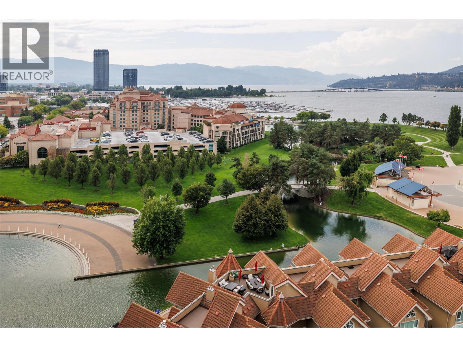 RARELY AVAILABLE - Waterfront Sub-Penthouse at the center of Kelowna’s downtown core! Set directly on the lake with access to private moorage. The Penthouse comes with 2962 square feet all on one floor at “The Lagoons”. Enjoy sweeping views of The Lake, City, and Mountains from your 4 private decks with Italian non-slip tiling. The layout features 3 bedrooms each with their own ensuite, plus a guest bath and den. The kitchen is equipped with two islands, granite and quartz countertops, custom cabinetry and premium appliances by Miele, KitchenAid, and LG. The formal dining area with wet bar flows into the grand living room that is framed by floor-to-ceiling windows and hosts the gas fireplace. The Master Bedroom has large bay windows, deck access, a generous walk-in closet, and a 5-piece spa-inspired ensuite with soaker tub and tiled shower. Additional highlights include hardwood flooring, extensive built-ins, integrated media wiring by Beyond Audio and meticulous finishings throughout. Residents of The Lagoons enjoy resort-style amenities: indoor and outdoor pools, hot tub, sauna, gym, clubhouse, bike storage, and secure parking. This is the pinnacle of waterfront city living—luxury, convenience and breathtaking views in one. (id:6770)