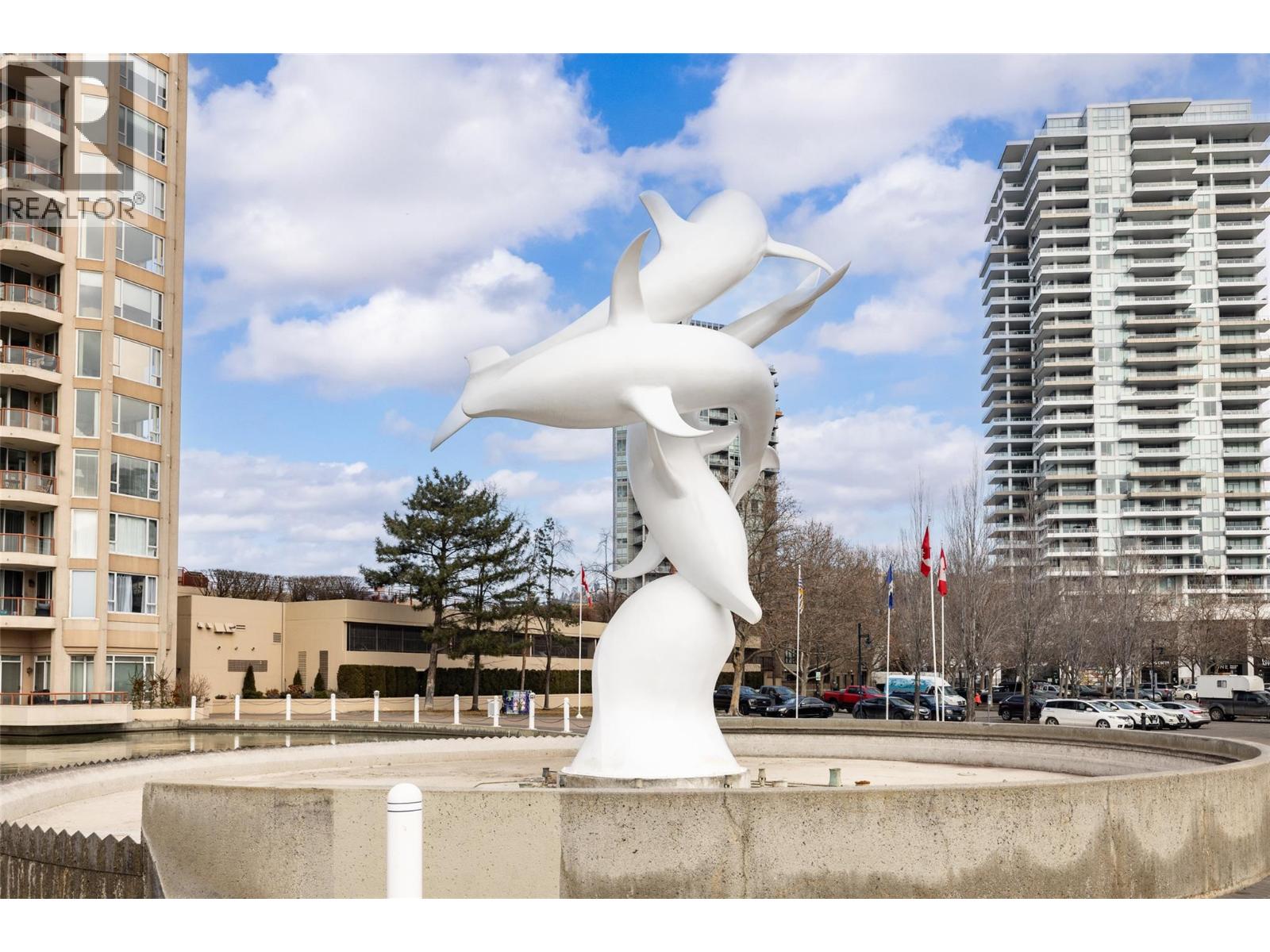 Iconic waterfront living in the heart of Kelowna’s Cultural District! Perfectly positioned on the waterfront, this beautiful two bedroom two bathroom lakeview condo offers a front-row seat to the very best of downtown Kelowna living. Inside, expansive walls of windows flood the home with natural light and frame views of Okanagan Lake, the bridge, the boardwalk, and the iconic Dolphins fountain below. The thoughtfully designed floor plan blends comfort and function, with a generous living area, ideal for both everyday living and entertaining. The kitchen features bar-style seating, under-cabinet lighting, ample cabinetry, and abundant counter space, seamlessly opening to the dining area where lake and city views elevate every meal. Step outside to not one, but two private patios, perfect for morning coffee, sunset dinners, or a glass of Okanagan wine as the city lights come alive. The primary bedroom is a true retreat, complete with a walk-in closet and a private ensuite, while the second bedroom and full bathroom provide flexibility for guests, a home office, or family. The Dolphins offers resort-style amenities including an outdoor pool, hot tub, tennis court, fitness centre, and immaculately maintained grounds. Right outside your doorstep you’ll find Kelowna’s Cultural District, with world-class dining, galleries, theatres, boutique shopping, and microbreweries just steps away. Walk to the beach, marina, yacht club, boardwalk, festivals, and waterfront parks, or simply enjoy the energy of downtown from your own balcony. Whether you’re seeking a full-time residence, a high-end urban retreat, or a premier waterfront investment, this is lakefront living at its most iconic, where culture, convenience, and the Okanagan lifestyle meet. (id:6770)
