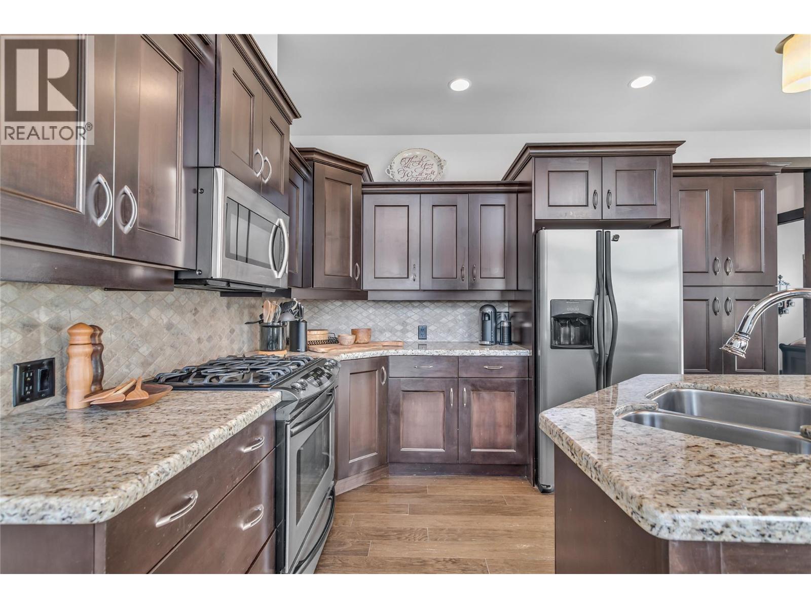 Located in Grizzly Ridge at Big White Ski Resort, this true classic ski chalet delivers timeless alpine character paired with thoughtful, high-end upgrades throughout. Originally built as the show home, the residence showcases superior craftsmanship, refined design, and premium finishes rarely found on the mountain. The home has never been rented with 1 owner and presents in exceptional condition. The main living level features two large bedrooms, each with its own ensuite and one with a gas fireplace for cozy nights, while the upper level offers two additional spacious bedrooms complemented by a full bathroom. In total, the home includes 3.5 bathrooms, all with heated floors and a large steam shower in the main primary, providing comfort and functionality for families and guests. The former garage has been converted into a family room and ski/mud room with in floor radiant heat, adding approximately 375 sq ft of valuable living space (not included in finished measurements and easily converted back to a garage if desired). The main living area is anchored by vaulted ceilings, a chef’s kitchen and a WETT-certified wood-burning fireplace, creating an inviting chalet atmosphere. Additional highlights include views of the Monashee Mountain range through the floor to ceiling windows, a wine cellar, a loft, and a generous private patio with hot tub. Low strata fees complete this standout Grizzly Ridge offering. Furnishings are negotiable. (id:6770)