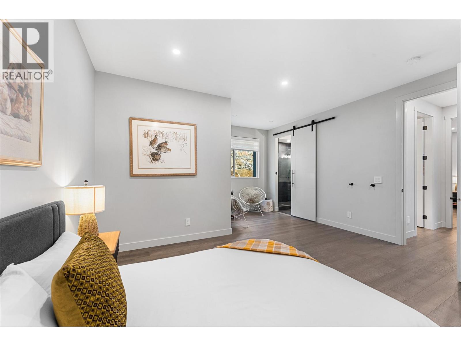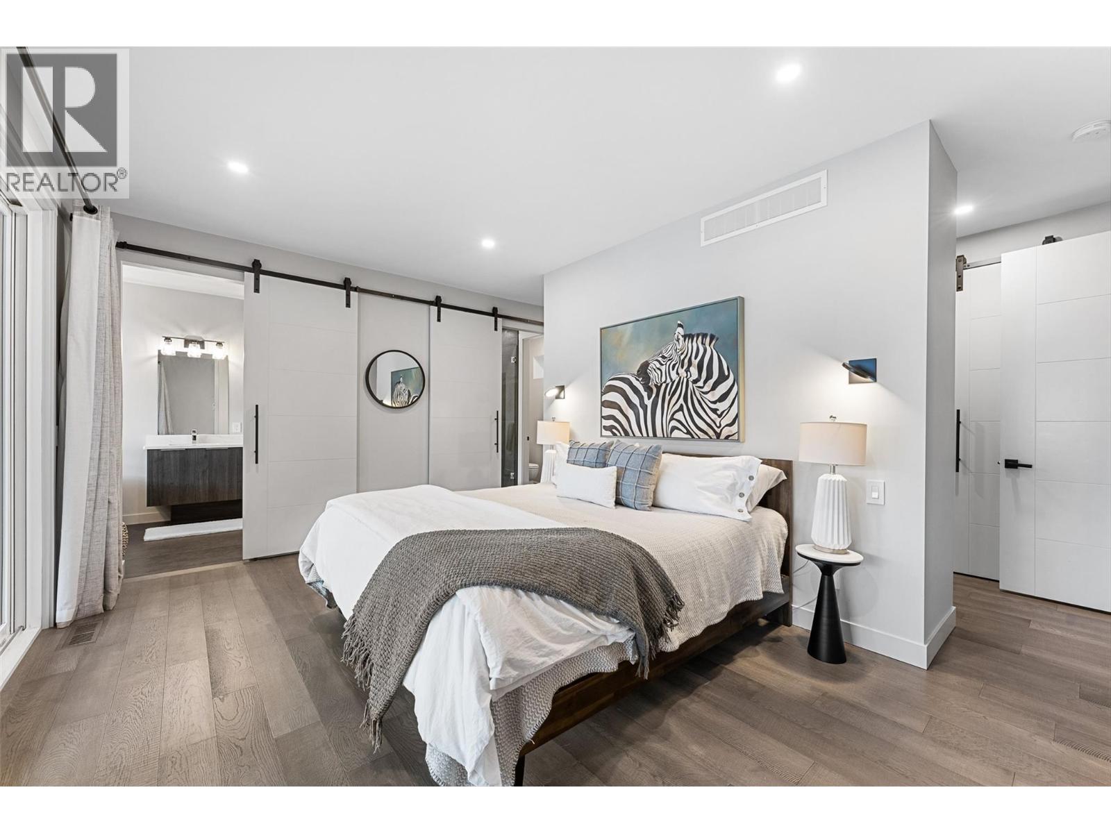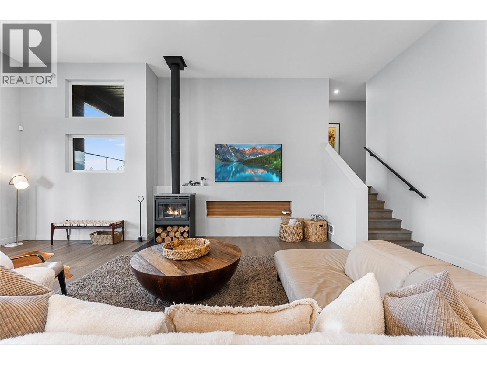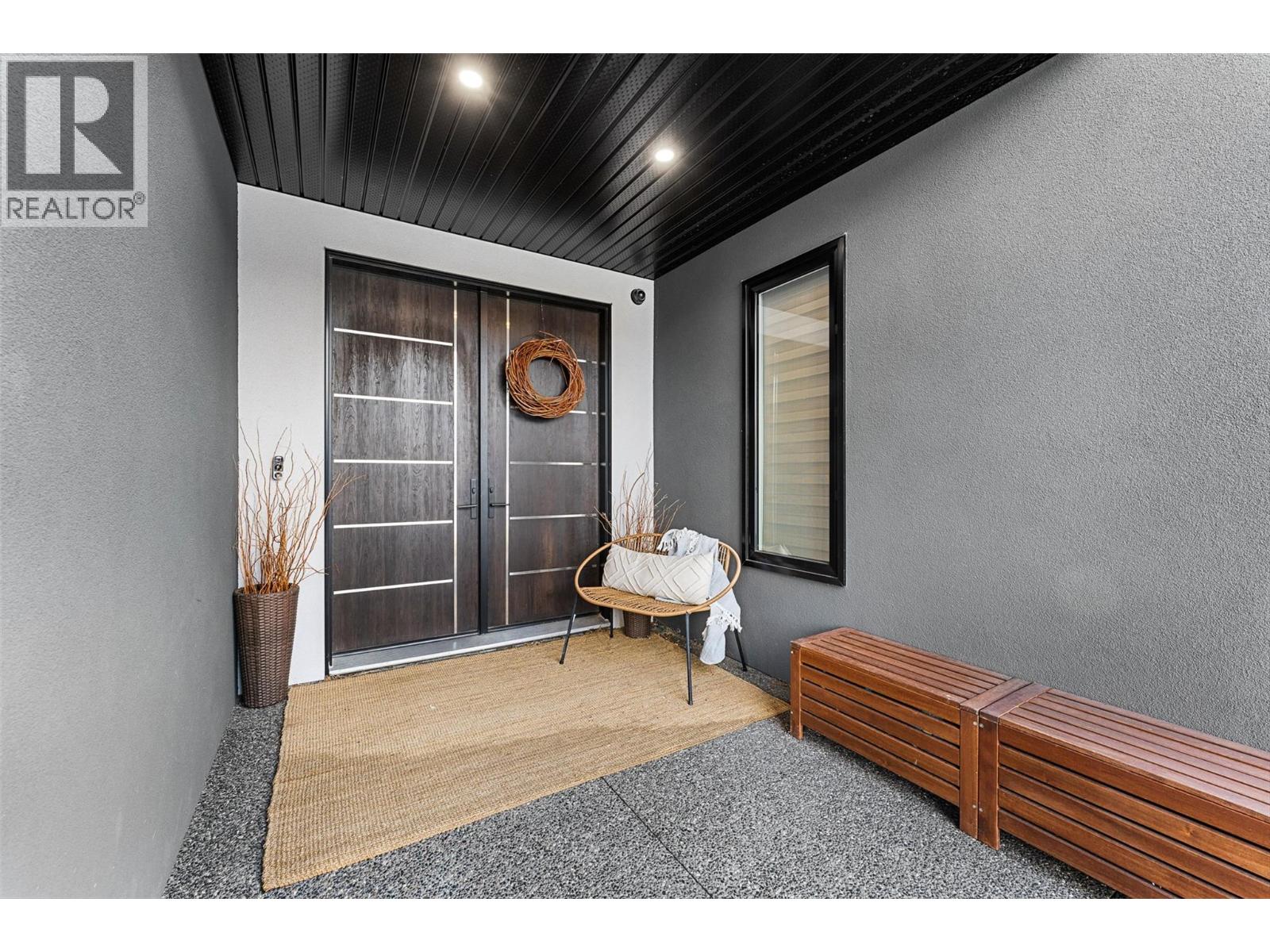 Set on a quiet no-through road in McKinley Beach, this contemporary residence offers a rare sense of privacy paired with uninterrupted views of Okanagan Lake. Designed across 3 levels, the home showcases soaring ceilings, wide-plank hardwood floors, and expansive walls of glass that capture sweeping lake and mountain vistas. The main level is anchored by a dramatic great room with a wood-burning stove and floor-to-ceiling windows, seamlessly connecting to the chef’s kitchen. Here, an eight-burner Fisher & Paykel gas cooktop, two Bosch wall ovens, oversized island and full butler’s pantry with built-in appliances makes entertaining effortless. The dining area opens to a covered deck with glass railings, in-ceiling heaters, integrated speakers, an inviting space to enjoy the view year-round. Two bedrooms with a shared bath located on this level. Upper floor is dedicated to the primary retreat, featuring a private patio with hot tub, a spa-inspired five-piece ensuite with freestanding soaker tub, and a walk-in closet with custom built-ins. A rooftop patio with turf expands outdoor living. Below, the lower level offers a fourth bedroom, mudroom, and a versatile recreation room with two oversized garage doors, ideal for a home gym. Two car garage with epoxy floors, potential for a 4 car garage. Hunter Douglas electronic blinds, Lutron lighting, and Honeywell Home security. Residents enjoy access to McKinley’s amenity centre with pool, gym, hot tub, pickleball courts, & more. (id:6770)