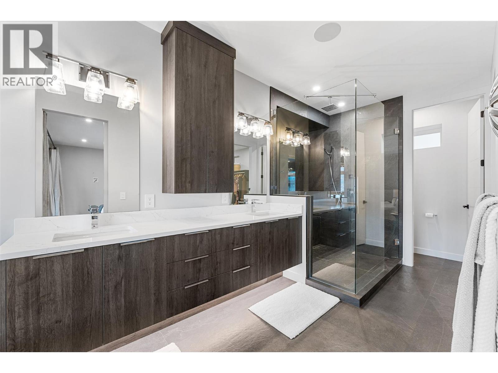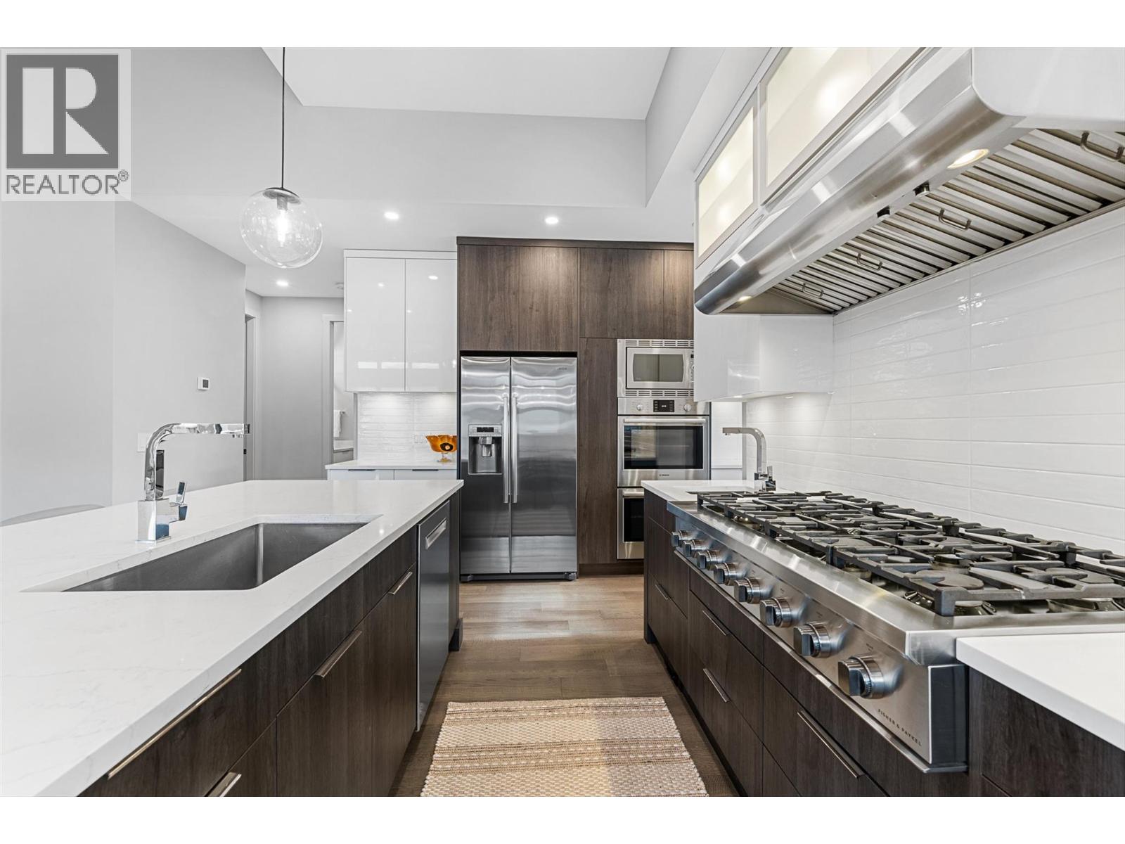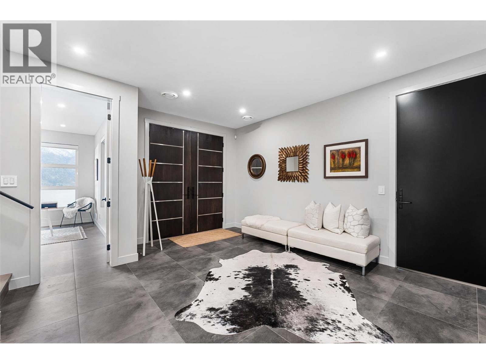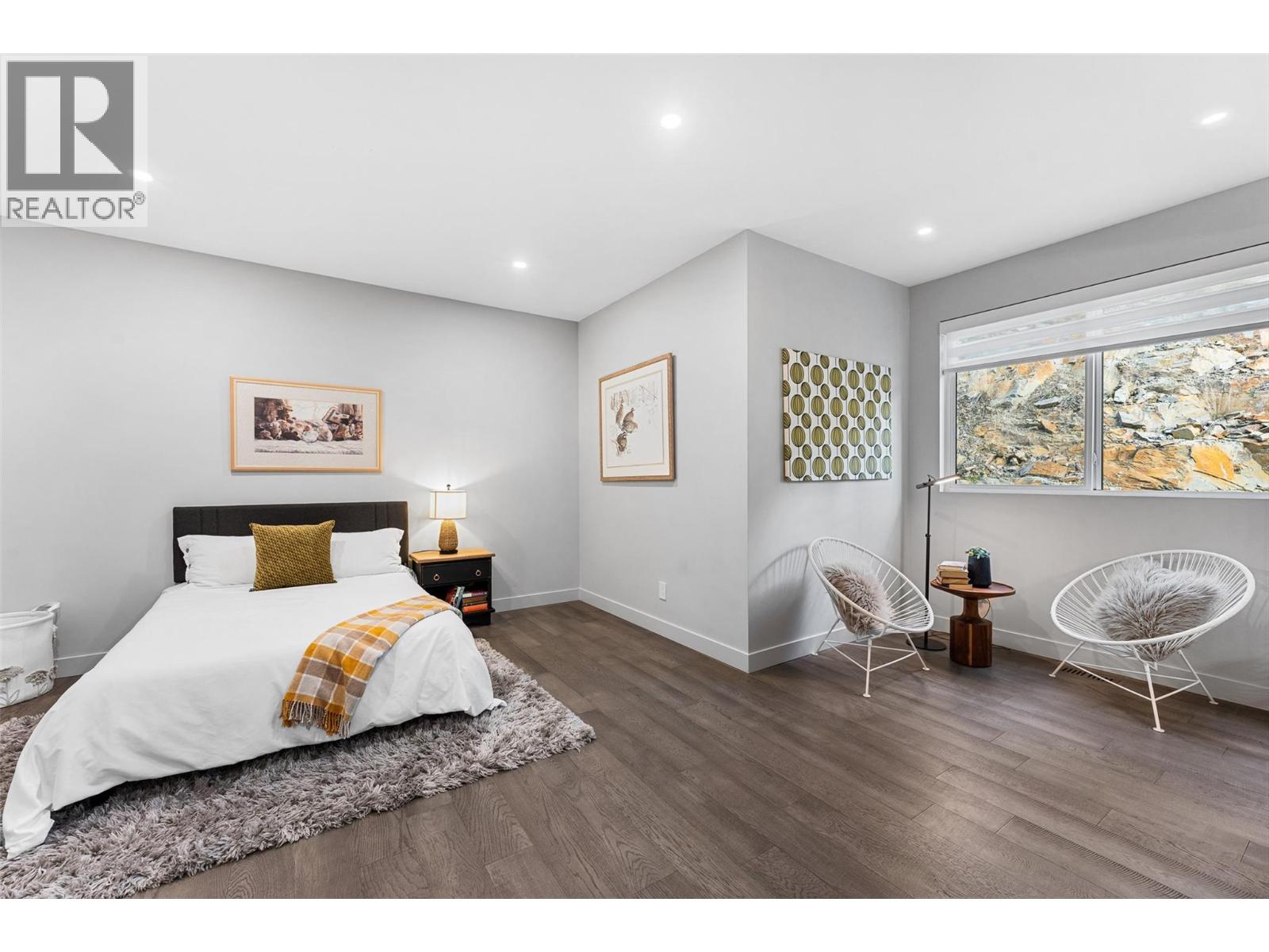 Set on a quiet no-through road in McKinley Beach, this contemporary residence offers a rare sense of privacy paired with uninterrupted views of Okanagan Lake. Designed across 3 levels, the home showcases soaring ceilings, wide-plank hardwood floors, and expansive walls of glass that capture sweeping lake and mountain vistas. The main level is anchored by a dramatic great room with a wood-burning stove and floor-to-ceiling windows, seamlessly connecting to the chef’s kitchen. Here, an eight-burner Fisher & Paykel gas cooktop, two Bosch wall ovens, oversized island and full butler’s pantry with built-in appliances makes entertaining effortless. The dining area opens to a covered deck with glass railings, in-ceiling heaters, integrated speakers, an inviting space to enjoy the view year-round. Two bedrooms with a shared bath located on this level. Upper floor is dedicated to the primary retreat, featuring a private patio with hot tub, a spa-inspired five-piece ensuite with freestanding soaker tub, and a walk-in closet with custom built-ins. A rooftop patio with turf expands outdoor living. Below, the lower level offers a fourth bedroom, mudroom, and a versatile recreation room with two oversized garage doors, ideal for a home gym. Two car garage with epoxy floors, potential for a 4 car garage. Hunter Douglas electronic blinds, Lutron lighting, and Honeywell Home security. Residents enjoy access to McKinley’s amenity centre with pool, gym, hot tub, pickleball courts, & more. (id:6770)