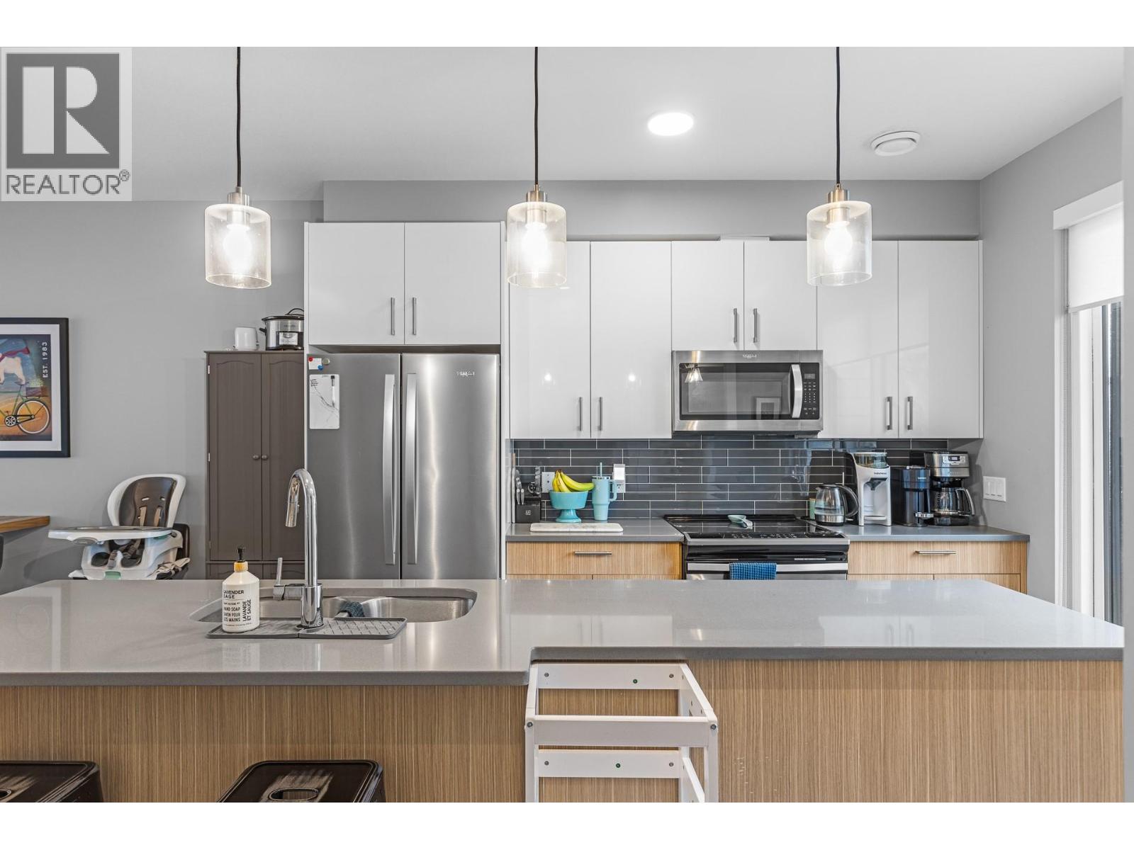 Enjoy Okanagan living just steps from Wood Lake in this impeccably maintained 2-bedroom, 2.5-bath townhome with a bonus room/flex room off the garage, perfectly located in the heart of Lake Country. Nearby lake access makes this a great place to call home that conveniently combines lifestyle, comfort, and convenience in one of the Okanagan’s fastest-growing communities. The main level features a bright, open-concept design with modern finishes throughout. The kitchen is well appointed with quartz countertops, a central island, stainless steel appliances. There is also a 2-piece bathroom just off the kitchen for convenience. Upstairs, two generous bedrooms include a primary suite with walk-in closet and ensuite featuring dual sinks and a walk-in shower. A full main bathroom with bathtub serves the large second bedroom. The garage level provides parking for one vehicle and comes with a great finished bonus/flex room that is currently used for guests, but offers great potential space for a home gym, office, or additional TV/Recreation room. There is ample street parking available. The unit features an outdoor deck with gas bbq hookup off the kitchen and a patio off the living room with a small wooden deck and some common grass space for kids to play. Located near restaurants, shopping, beaches, and the Rail Trail, this location offers convenient Lake Country living and it's only a 15 minute drive to UBCO and Kelowna International Airport. (id:6770)