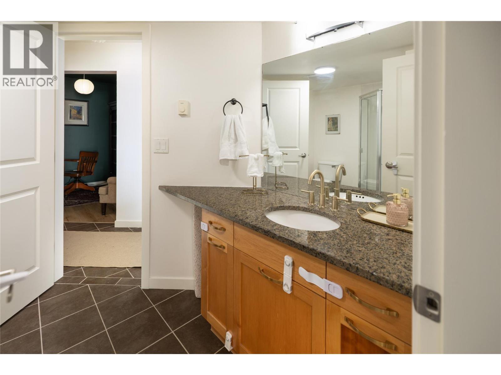 Top-floor corner unit at The Verve in a prime southeast position—quiet, private, and showcasing unobstructed views of Dilworth Mountain and the city skyline. With soaring 13-foot ceilings in the main living area, this home feels bright and spacious, enhanced by large windows that flood the space with natural light. The kitchen features granite countertops and brand-new stainless appliances, seamlessly connecting to the dining and living areas where an electric fireplace adds warmth and character. The smart floor plan includes two bedrooms on opposite sides for privacy, a versatile den, and two full bathrooms. Resort-style amenities make this community stand out: an outdoor pool, hot tub, BBQ patio with plenty of seating, gathering areas, and a dedicated dog run. Everyday living is enhanced by in-suite laundry, a storage locker, bike storage, and two secure underground parking stalls—a rare find. The Verve offers the perfect balance of quiet retreat and convenience, just minutes from shopping, dining, UBCO, and Kelowna International Airport. (id:6770)
