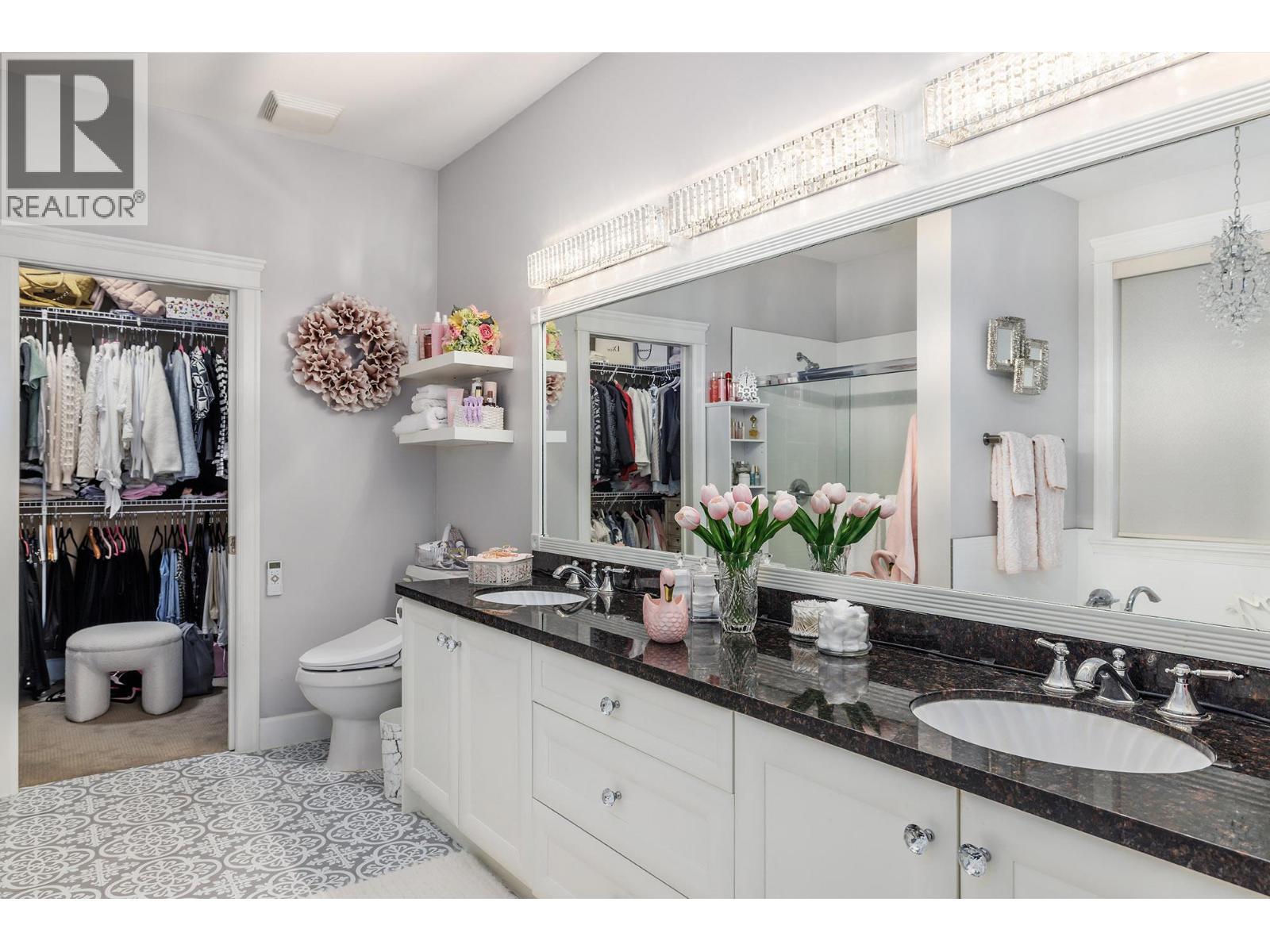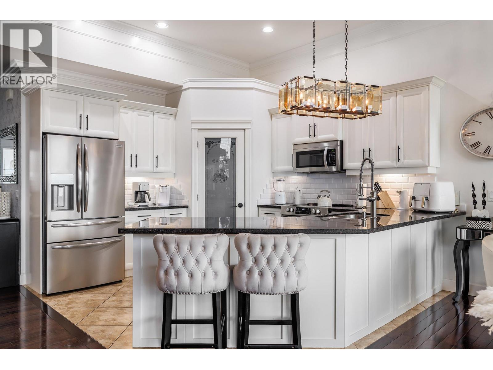 Discover elevated luxury living in The Highlands, one of West Kelowna’s most prestigious gated communities. This impeccably maintained 3,300+ sq ft walkout rancher offers impressive scale, refined finishes, and unobstructed lake, mountain, and valley views. Designed for grand entertaining and everyday comfort, the open-concept main level is enhanced by 12-foot ceilings, expansive windows, rich crown moulding, and gleaming hardwood floors that frame the stunning lake view outlook. The chef-inspired kitchen features newer stainless steel appliances, a convection range with built-in air fryer, granite island, and walk-in pantry. Step outside to the private, covered upper balcony with gas hookup—ideal for sunset dining and with exceptional privacy. The expansive primary suite is a nice retreat with a spa-inspired ensuite showcasing a double granite vanity, soaker tub, and separate shower. The lower level with two additional bedrooms, a full bathroom, and a spacious family room with oversized windows and walkout access to a covered patio offering secluded outdoor living and hot tub hookup. The fully fenced, beautifully landscaped backyard provides a serene, private setting. A standout media and recreation room with built-in bar, beverage fridge, and wine cooler completes this exceptional home. Quietly tucked away in a secure community yet minutes to schools, golf, shopping, and dining, this residence delivers luxury, space, privacy, and iconic Okanagan views without compromise. (id:6770)