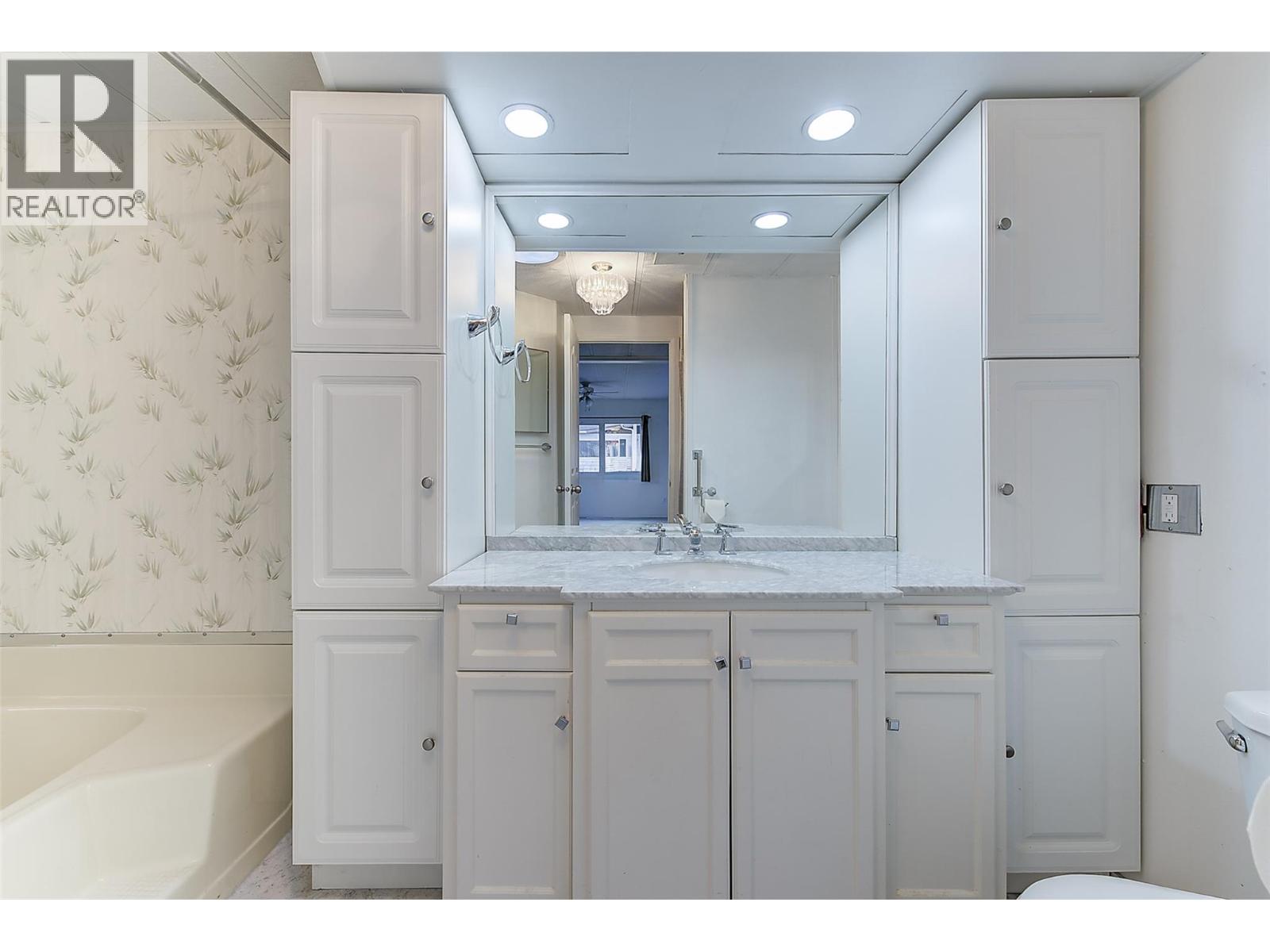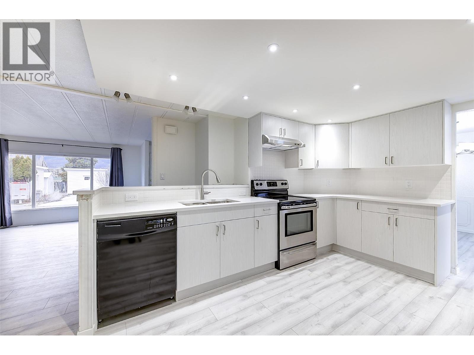 This lovely 3 bedroom/2bath home has been beautifully renovated and is located in desirable Lakeview Heights just blocks to Okanagan Lake. 1,680 square foot double wide this home has plenty of room with a 3 sided fireplace separating the formal living/dining area from the casual family room, new kitchen with nook and eating bar (kitchen has new quartz countertops, backsplash, newer appliances, lighting), new vinyl flooring throughout the home. Bedrooms are on opposite sides and the primary bedroom has a 5 piece ensuite, second bath is a new 4 piece. There is an enclosed rear sundeck entrance/sunroom with adjoining 10 x 10 workshop/storage area to tinker and the rear patio is perfect for relaxing with friends and family. Central air keeps things cool in the Summer, there is a lake view from the front porch in the Fall and Winter and there is paved parking for 2 cars. Updated electrical throughout and new CSA electrical label. 55+, no dogs, no on site rv parking., no rentals Don't miss out on this beautiful home located in a fantastic location close to shopping, restaurants, beaches, golf, wineries and just minutes into Kelowna. (id:6770)