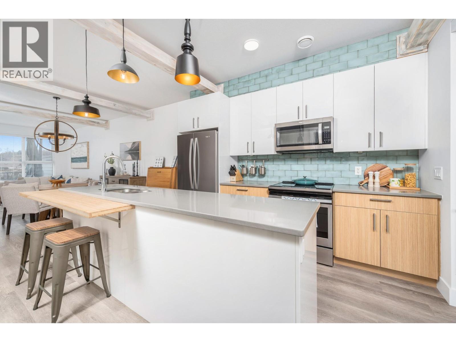 Live the Okanagan lifestyle at this beautiful 2 bed 2.5 bath Sandon Place townhouse, just steps from Wood Lake. Whether it’s morning paddle boarding, evening walks by the lake, or biking along the Rail Trail, this location makes it easy to enjoy the outdoors throughout the seasons. Beasley Park, beaches, restaurants, and local wineries are all within a hop, skip and jump, making this an ideal home for an active lifestyle. Inside, the home is bright and welcoming with large windows and oversized sliding glass doors that fill the space with natural light. The living room features a 6' Napoleon electric fireplace. The main floor layout flows easily to two outdoor decks, including one off the kitchen with natural gas BBQ hookup and another off the living room with room for patio furniture and plants, where you can enjoy hillside views and outdoor living. Upstairs you’ll find two generous bedrooms, including a primary suite with a bright walk in closet and a spacious ensuite featuring double sinks and a walk in shower. The tandem garage provides secure parking plus extra space for storage, bikes or paddle boards. There are quartz countertops throughout, air conditioning and easy access to Wood Lake. If you’ve been looking for a low maintenance home close to the lake, trails and everyday amenities, this townhouse offers an unbeatable Lake Country location. 10 minutes to the airport, easy access to Big White and Silver Star, and under 30 minutes to downtown Kelowna. (id:6770)