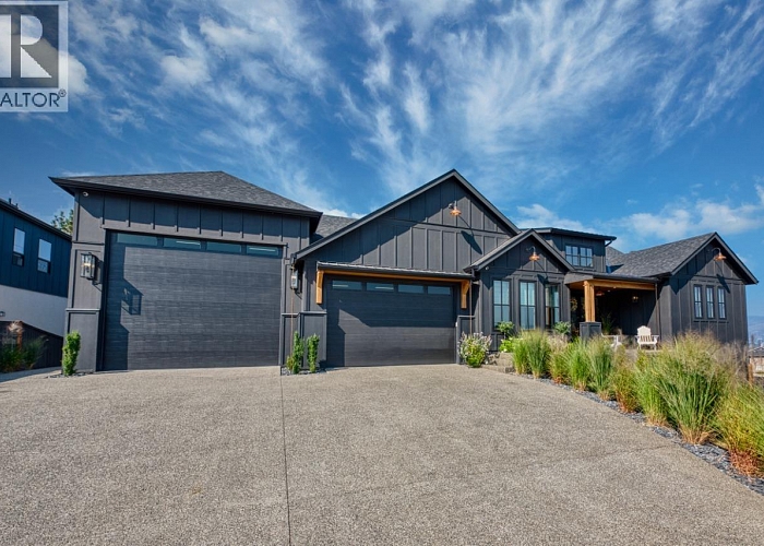 5 bedroom, 4.5 bathroom ranch-style estate located in Kelowna’s Kettle Valley community. Built in 2022, this gated modern farmhouse features over 5,500 sq. ft. of living space with lake, mountain, and city views. The main level includes an open...