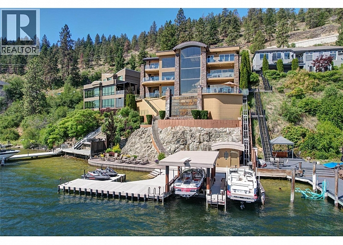 Sheerwater - One of the Okanagan’s most sought-after gated lakefront communities. A distinct modern West Coast architecture is evident through out this exceptionally crafted home perched on natural 2.5-acre setting offering a commanding view of...