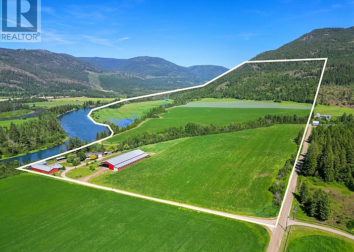 Exceedingly rare legacy holding - over 320 acres of prime farmland fronting on the Shuswap River, just 5 minutes from downtown Enderby and 30 minutes from Vernon Hospital. This exceptional estate offers scale, natural beauty, agricultural...