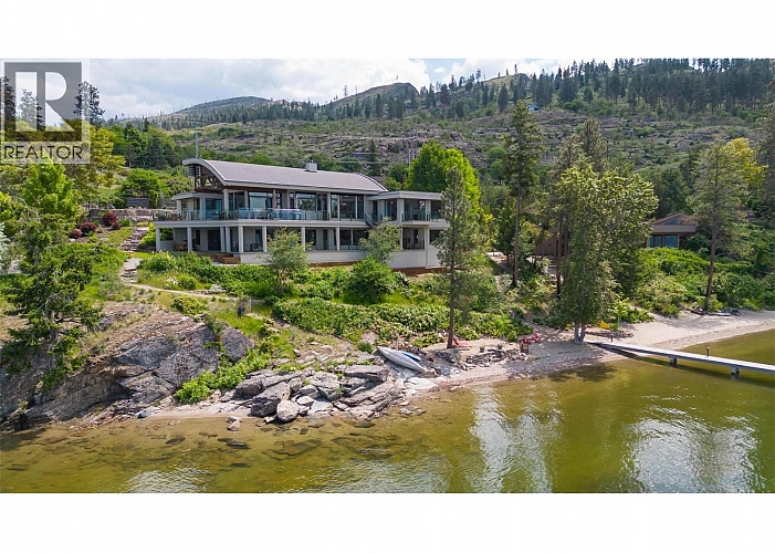 Tranquil Waterfront and Creekside Retreat. This gorgeous custom home is situated on a private 1.22 acre property along the shores of Okanagan Lake and offers 185 feet of water frontage. Lebanon Creek borders the property to the south. Designed by...