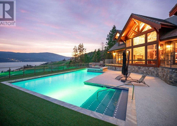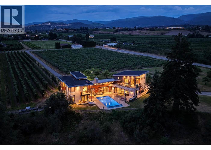 Authentic, architectural timber frame masterpiece with iconic lake & vineyard views. A rare offering, this handcrafted timber frame estate blends old-world artistry with modern luxury, set on a private acreage with sweeping views of Okanagan Lake...