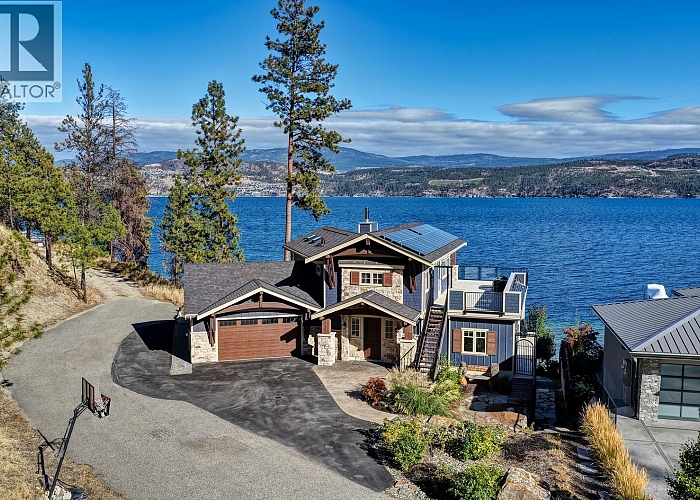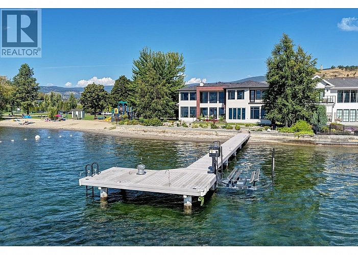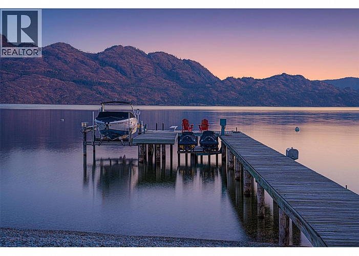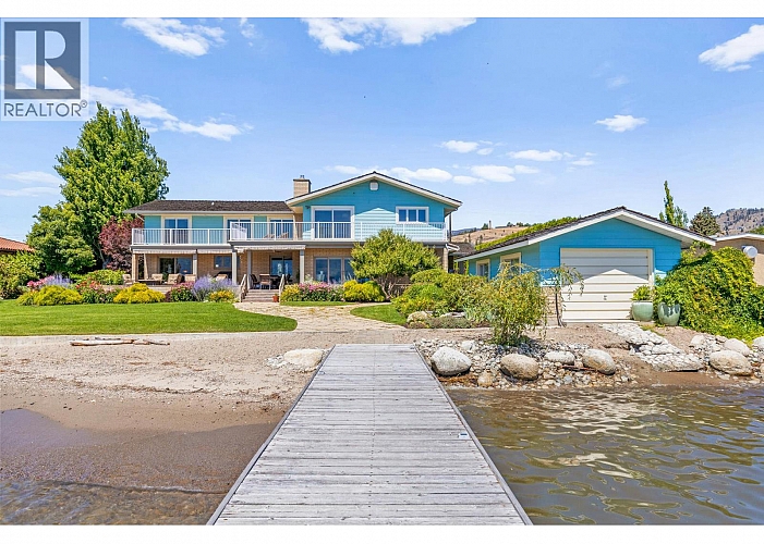 Live your Okanagan Lakefront dream with 128' of flat pristine beachfront on nearly .5 of an acre. Enjoy your licensed dock with 2 lifts, a boathouse for lake toys, and a lush irrigated yard with maple,pine,fruit trees, and beautiful flowers. The...