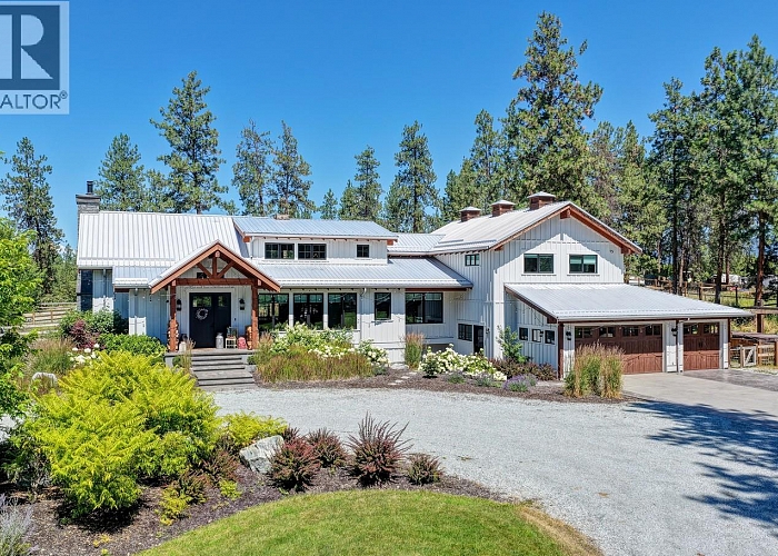 Gorgeous, modern farmhouse-style custom home set on nearly 8 acres in Southeast Kelowna. This equestrian haven is perfect for those seeking tranquility and privacy, just minutes from the amenities of the City of Kelowna. The property is fully...